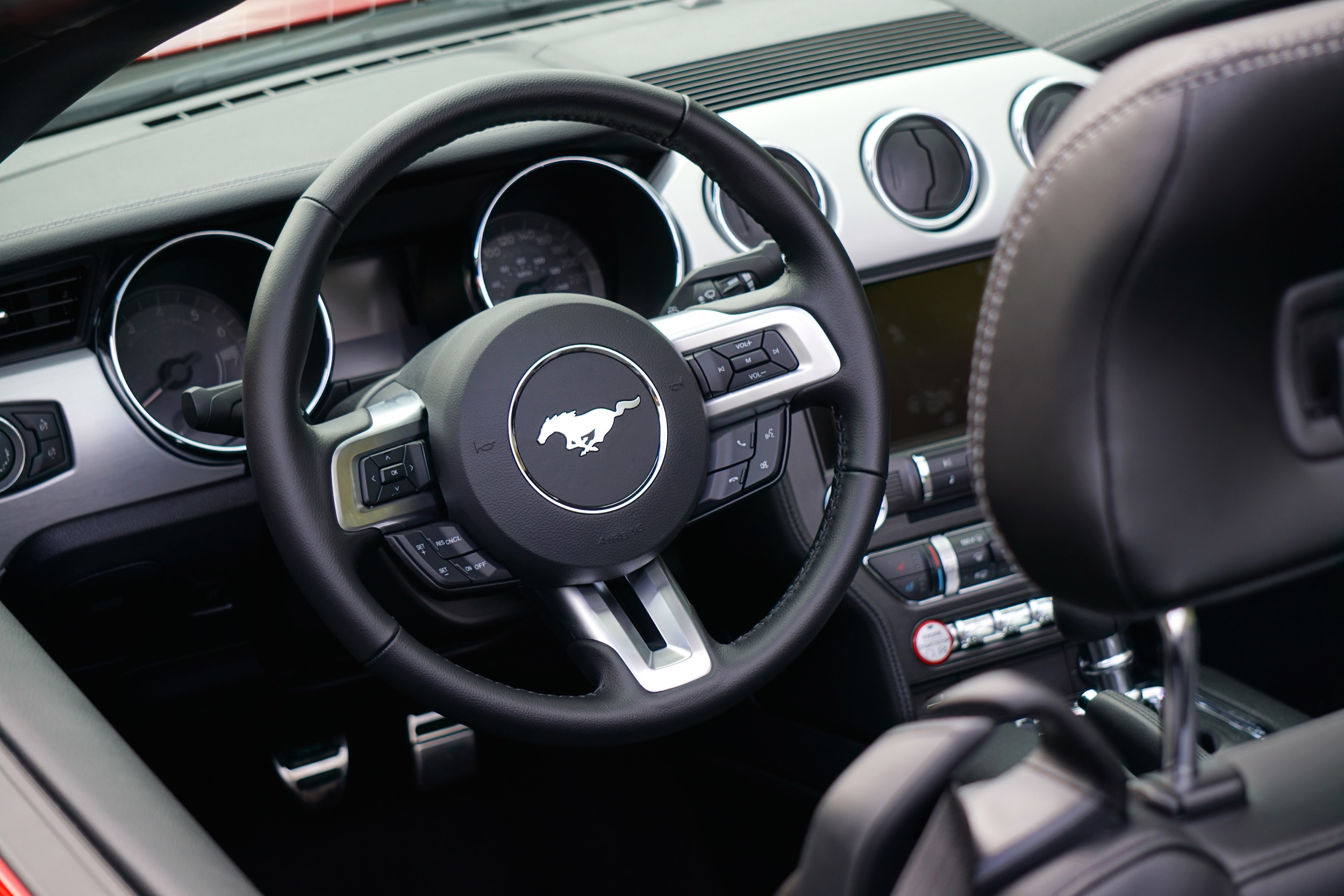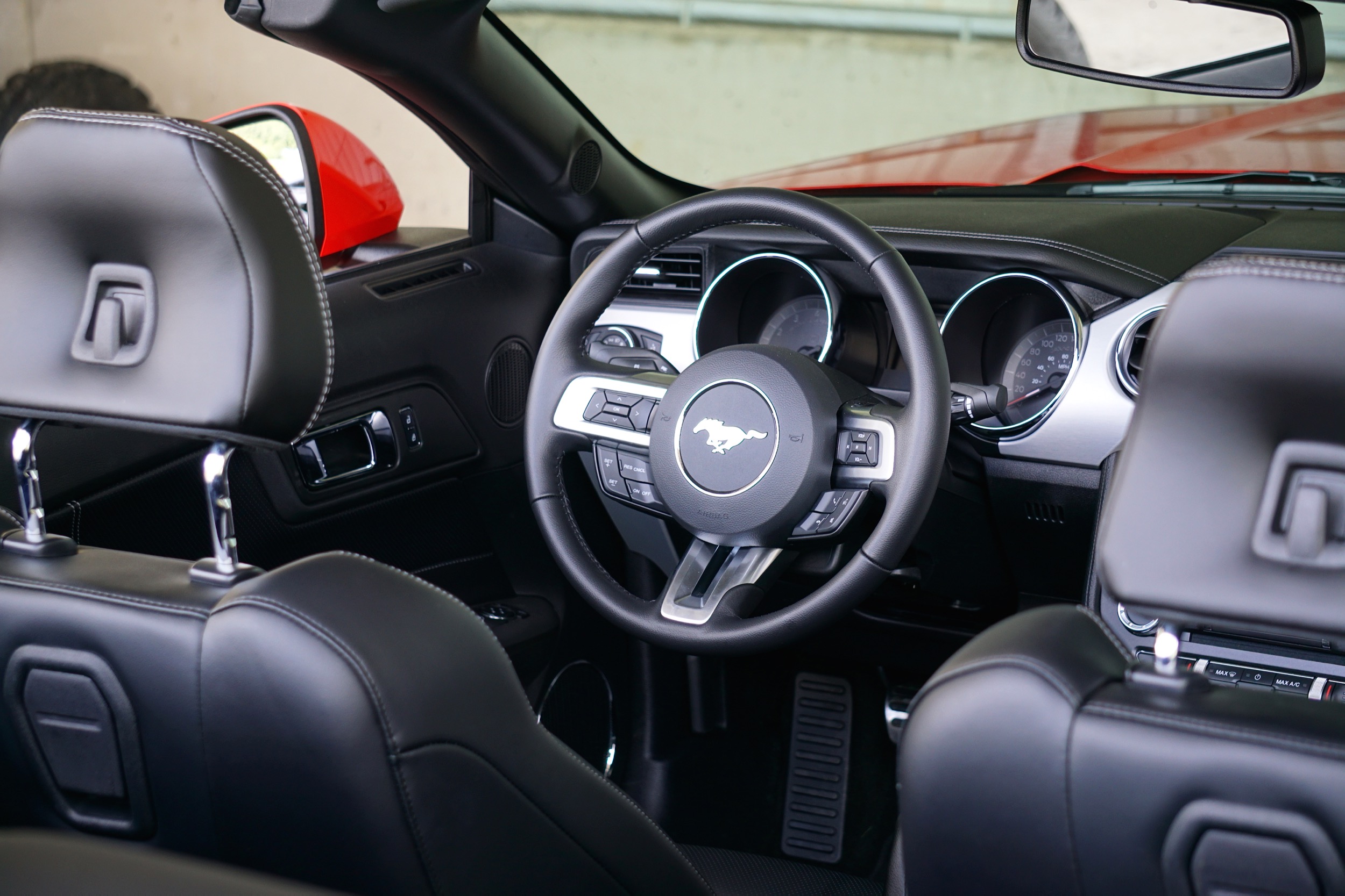 Will man mehr, will man das satte Brüllen des V8 hören und die Pferde traben lassen, dann freut sich das Herrschen so seht wie der Mustang. Letzterer kann das nämlich bedeutend besser als all seine Vorgänger in der 51-jährigen Geschichte des Modells, hat er doch endlich keine Starrachse mehr hinten, sondern ein ausgezeichnetes, sogar ziemlich aufwendiges Fahrwerk. Und diese richtig guten Brembo-Bremsen. Da kann man auch am Berg so richtig und problemfrei Fahrfreude haben, auch mal quer – und dann auf der Landstrasse wieder den erstaunlichen Komfort geniessen. Gut ist: das Cabrio macht einen stabilen Eindruck, von Verwindungen, während Jahrzehnten keine der Stärken von offenen US-Cars, ist nichts zu spüren.