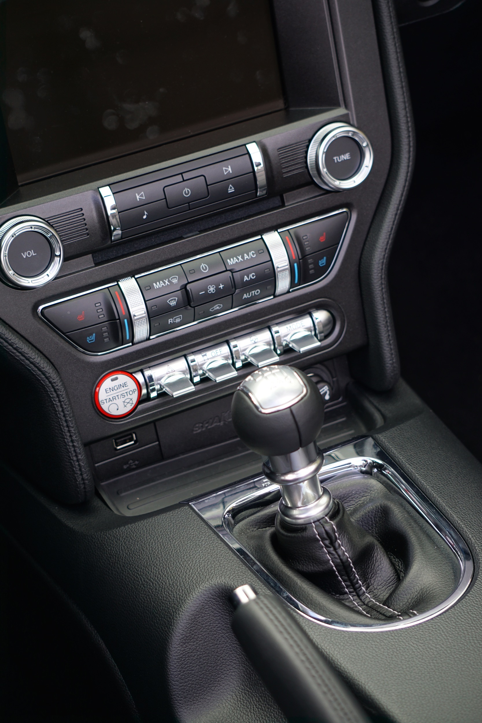 Das hat er auch verdient, nicht nur als Cabrio. Vom guten Preis/Leistungsverhältnis war schon die Rede, von den feinen Fahrleistungen und dem daraus folgenden Fahrvergnügen ebenfalls, doch er sieht halt auch noch gut aus, der neue Mustang, eine schöne Mischung aus nicht übertriebenen Retro-Zitaten und doch modernem Design. Auch innen ist das anständig geworden, nicht auf dem Niveau deutscher Premium-Anbieter, solcher Perfektionismus scheint in den USA irgendwie verpönt, doch trotzdem auf einem hohen Niveau. Und ergonomisch so sinnvoll, wie Automobile heute zu sein brauchen. Es gibt noch manch ein Knöpfchen im Cockpit des Ford, über dessen Verwendungszweck wir uns den Kopf zerbrachen (etwa: das Burnout-Syndrom), aber dieses spielerische Element gehört unbedingt zu einem Fahrzeug in der Art des offenen Mustang: die reine Vernunft ist bei diesem Wagen sicher nicht der Hauptkaufgrund. Ansonsten wieder so ein bisschen Retro, aber nicht übertrieben, eine schön übersichtliche Mittelkonsole, feine Schalter, gute Alu-Applikationen. Das Ganze sieht aufgeräumt aus, stellt den Piloten nicht vor Rätsel, der Gangstock liegt perfekt zur Hand, und das Lenkrad ebenfalls.