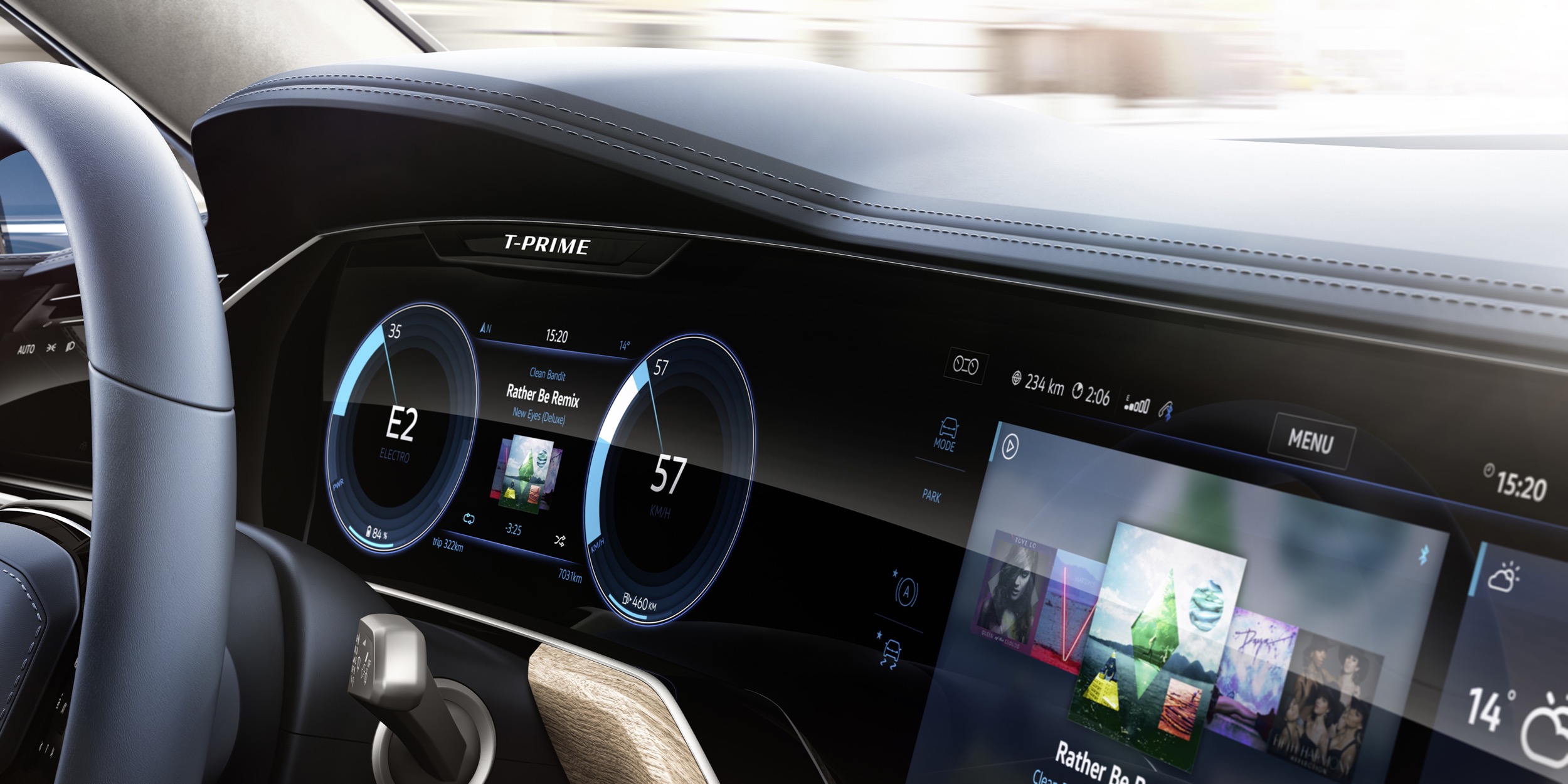 Auch sonst packt VW alles in das Concept-Car, was es anscheinend braucht für die zukünftige Mobilität. Noch ein Zitat, weil wir es ja nie so schön beschreiben könnten: «Ein automobiles Statement der Neuzeit; komplett neu designt und konstruiert. Mit einem ebenfalls völlig neuen Anzeige- und Bedienkonzept; hier integriert hat Volkswagen die neue Curved Interaction Area – das als Novum gebogene Infotainmentdisplay verschmilzt dabei mit den interaktiven Anzeige- und Bedienelementen. So entstand ein neues Human-Machine-Interface (HMI), mit dem die intuitive Bedienung via Curved Interaction Area in eine präzise „Fun-to-use“-Bedienästhetik transferiert wird». Wahnsinn. Bloss, dass vielleicht vor lauter Connecitivity und tralala vergessen ging, dass ein Fahrzeug auch aussen noch so etwas wie «Design» brauchen würde…