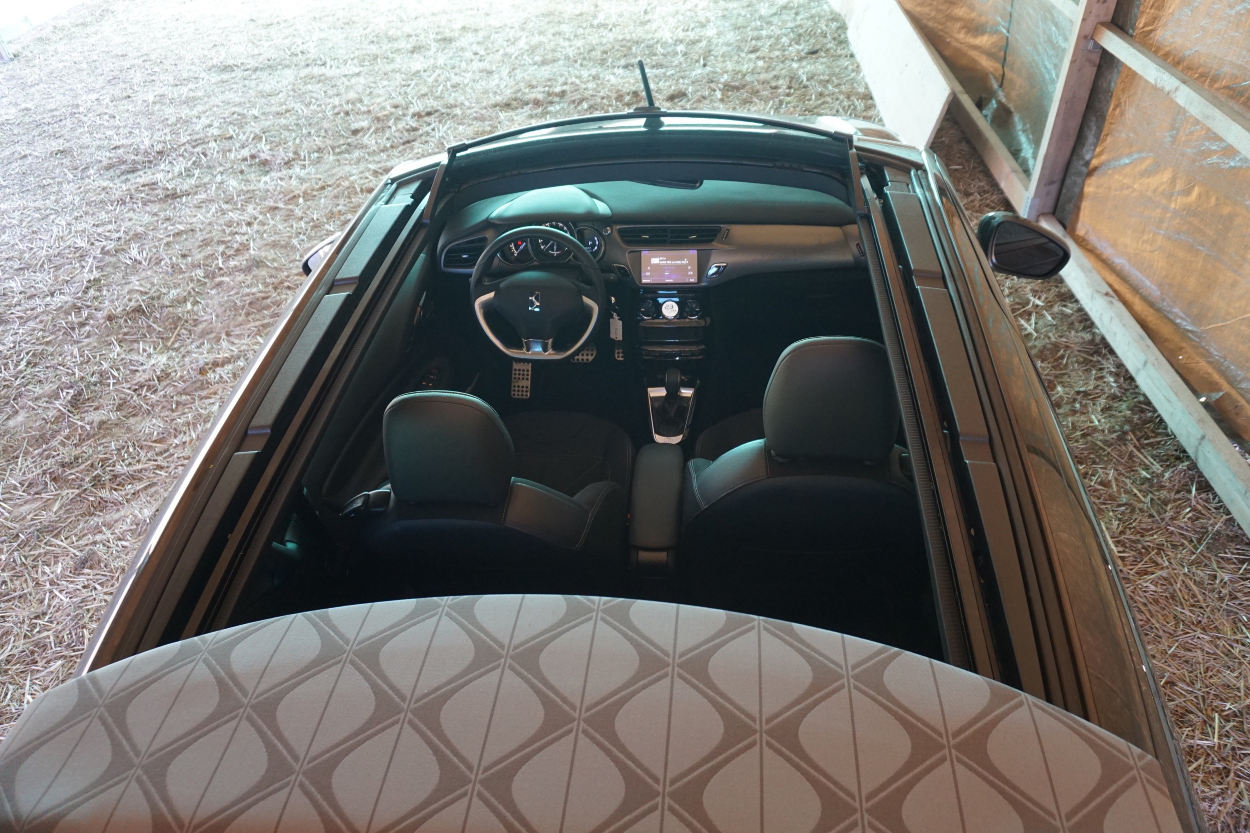 Leider verfügt der DS3 noch nicht über das neue Bediensystem von Citroën, es gibt zwar einen grossen Touchscreen, doch auch noch diverse Knöpfchen und Schalterchen, die heute irgendwie nicht mehr so ganz zeitgemäss erscheinen. Die Übersicht bleibt trotzdem gewahrt, die Bedienung ist logisch; es ist anzunehmen, dass beim nächsten Facelift innen alles anders werden wird auch in den DS-Modellen. Die Sitze sind angenehm, mehr auf der sportiven Seite; auf der hinteren Sitzbank möchte man aber nicht dringend weite Reisen unternehmen wollen. Und auch der Kofferraum strotzt beim Cabrio nicht gerade vor Volumen (245 Liter), zudem ist die Ladelucke mehr so ein Witz; die Weinflaschen und auch das Handtäschchen bringt man eigentlich nur quer hinein.