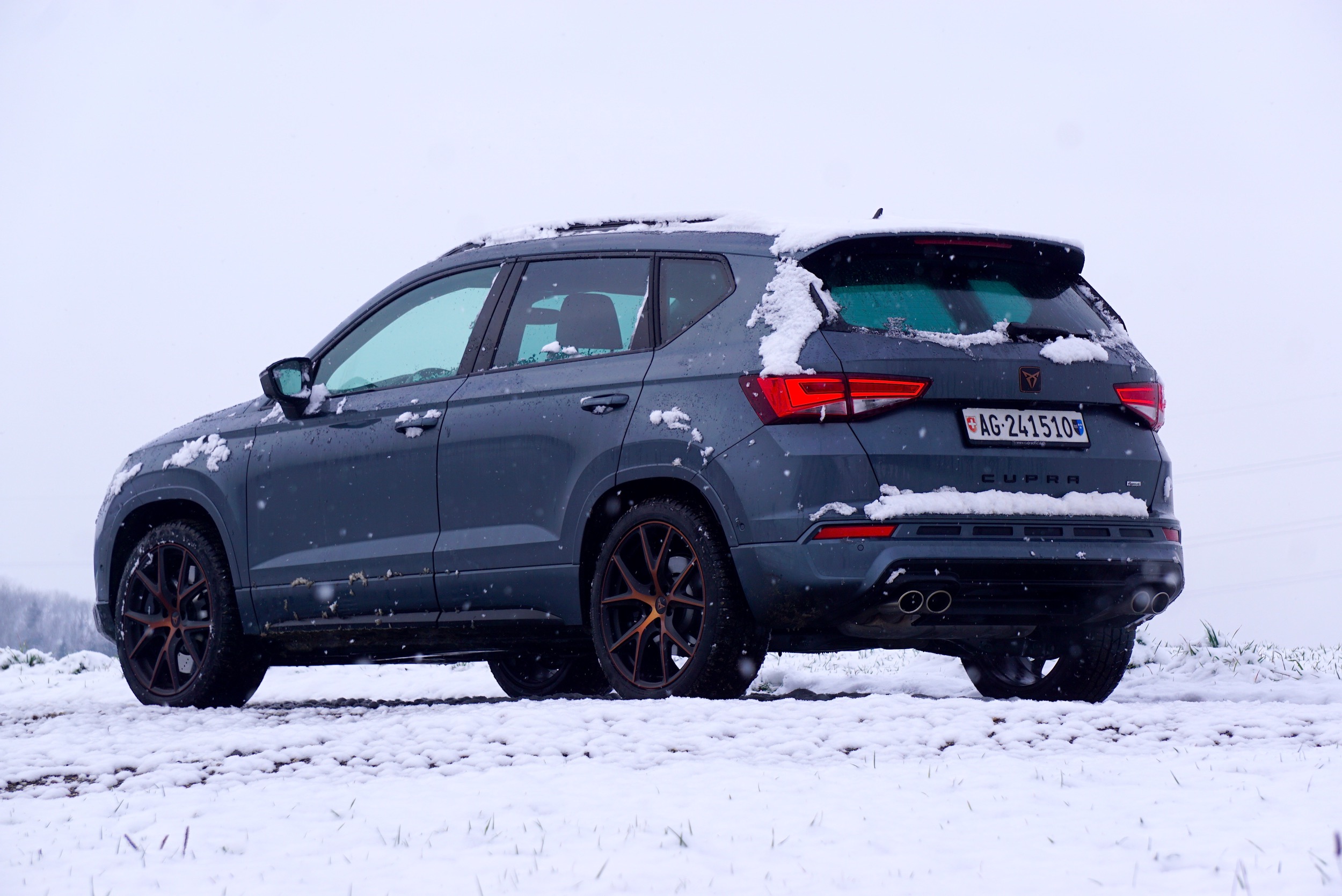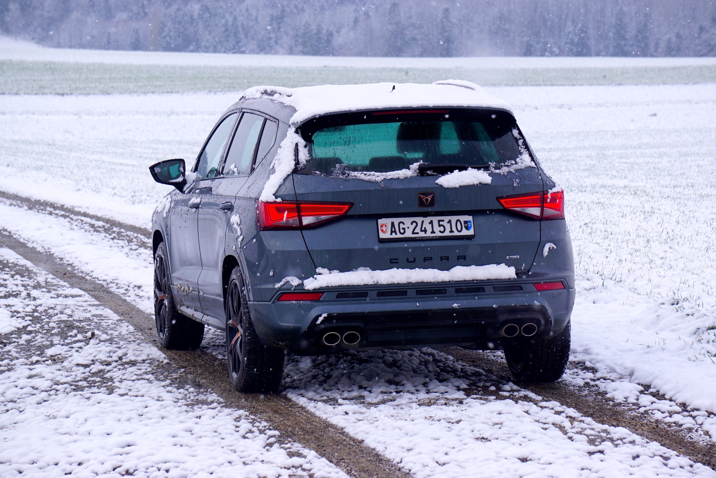 Die Insignien der Macht sind etwas dürftig. Am besten erkennt man den Cupra aussen an den vier Auspuffendrohren, den 19-Zöllern und der aggressiver gestalteten Front; innen hält sich das Aufbretzeln in sehr engen Grenzen, es könnte dies gut auch ein deutlich günstigerer Skoda sein, wenn man einmal von den Alu-Pedalen absieht. Ja, klar. MQB mal wieder, und so ist die Bedienung logisch, alles durchdacht, doch man würde sich in einem solchen Modell, das ja auch nicht ganz günstig ist, schon etwas mehr wünschen, irgendetwas: Spezielles. Denn auch die hübschen (sowie überraschend bequemen) Alcantara-Sportsitze gibt es nur gegen gutes Aufgeld. Die Platzverhältnisse sind anständig, auch hinten sitzen die Passagiere nicht unbequem, das Kofferraumvolumen von 485 bis maximal 1579 Liter ist nicht auf Skoda-Niveau, aber: ok. Selbstverständlich ist der bekannte 2-Liter-Turbo eine gute Maschine, das 7-Gang-DSG passt auch bestens, ausser vielleicht an der Tankstelle. Wie überhaupt der ganze Wagen als Grossesganzes absolut ok ist, wenn auch irgendwie nicht ganz zu Ende gedacht. Doch es musste halt, sorry, umsverrecken ein SUV sein.