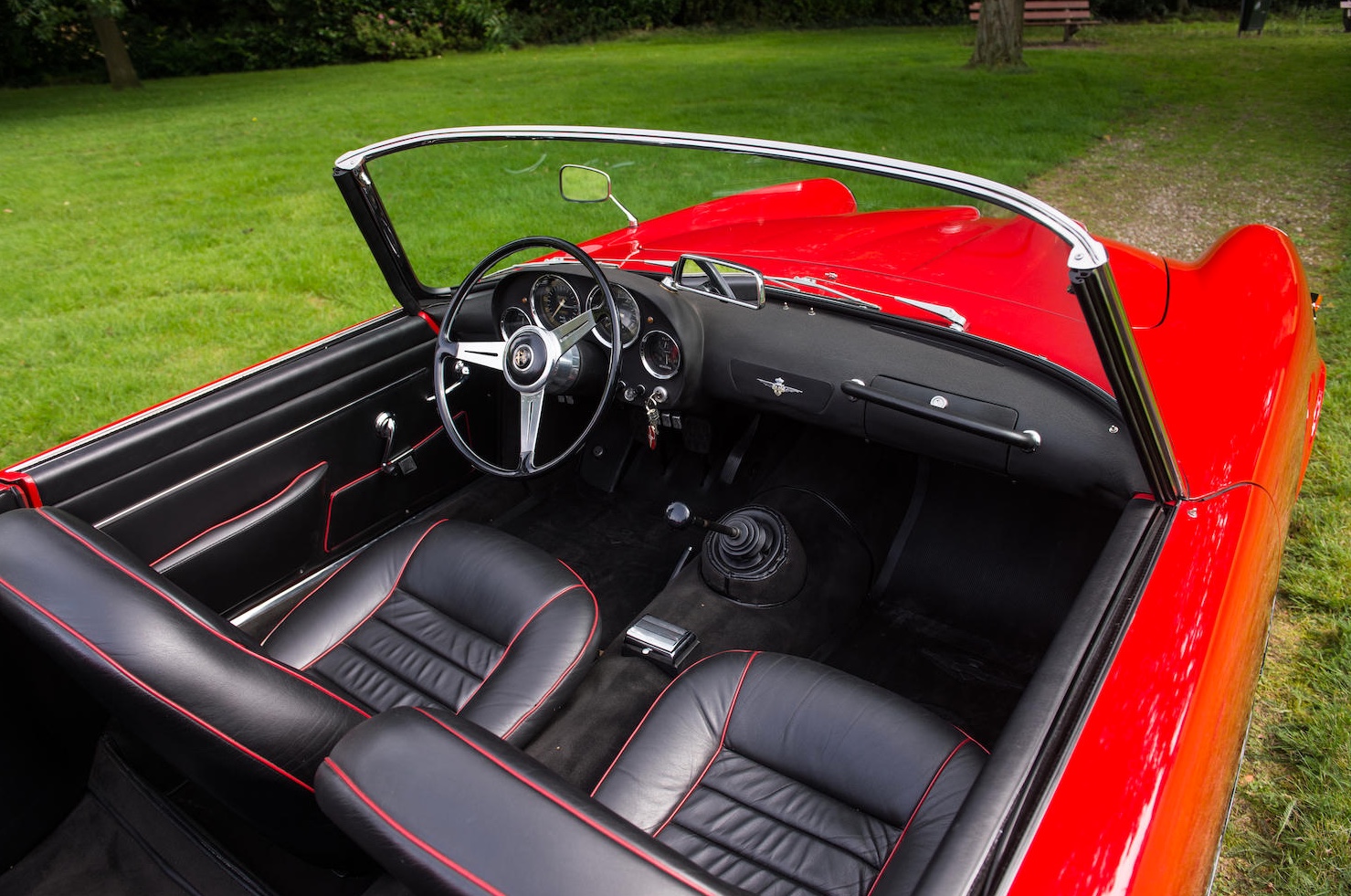 Doch hier geht es um den von Felice Bianchi Anderloni entworfenen und bei Touring gebauten 2000 Spider, der in seiner Form ein Meisterwerk ist und das Cabrio-Design entscheidend beeinflusst hat. Die an die Giulietta Spider (750D) angelehnten, so simplen und gerade deshalb auch sehr harmonischen Linien sowie das Stoffdach, das sich komplett versenken liess, machten den Spider zu einem Entwurf für die Ewigkeit. Obwohl für den Spider der Radstand um 22 Zentimeter auf 2,5 Meter gekürzt worden war, war der Spider mit einer Länge von 4,5 Metern ein doch mächtiges Fahrzeug; das Gewicht wurde mit 1260 Kilo angegeben. Ein kurzer Vergleich noch mit der Giuletta: Radstand 2,5/2,25 Meter, Länge 4,5/3,9, Breite 1,66/1,58 Meter, Höhe 1,38/1,26 Meter, Gewicht 1260/860 Kilo.