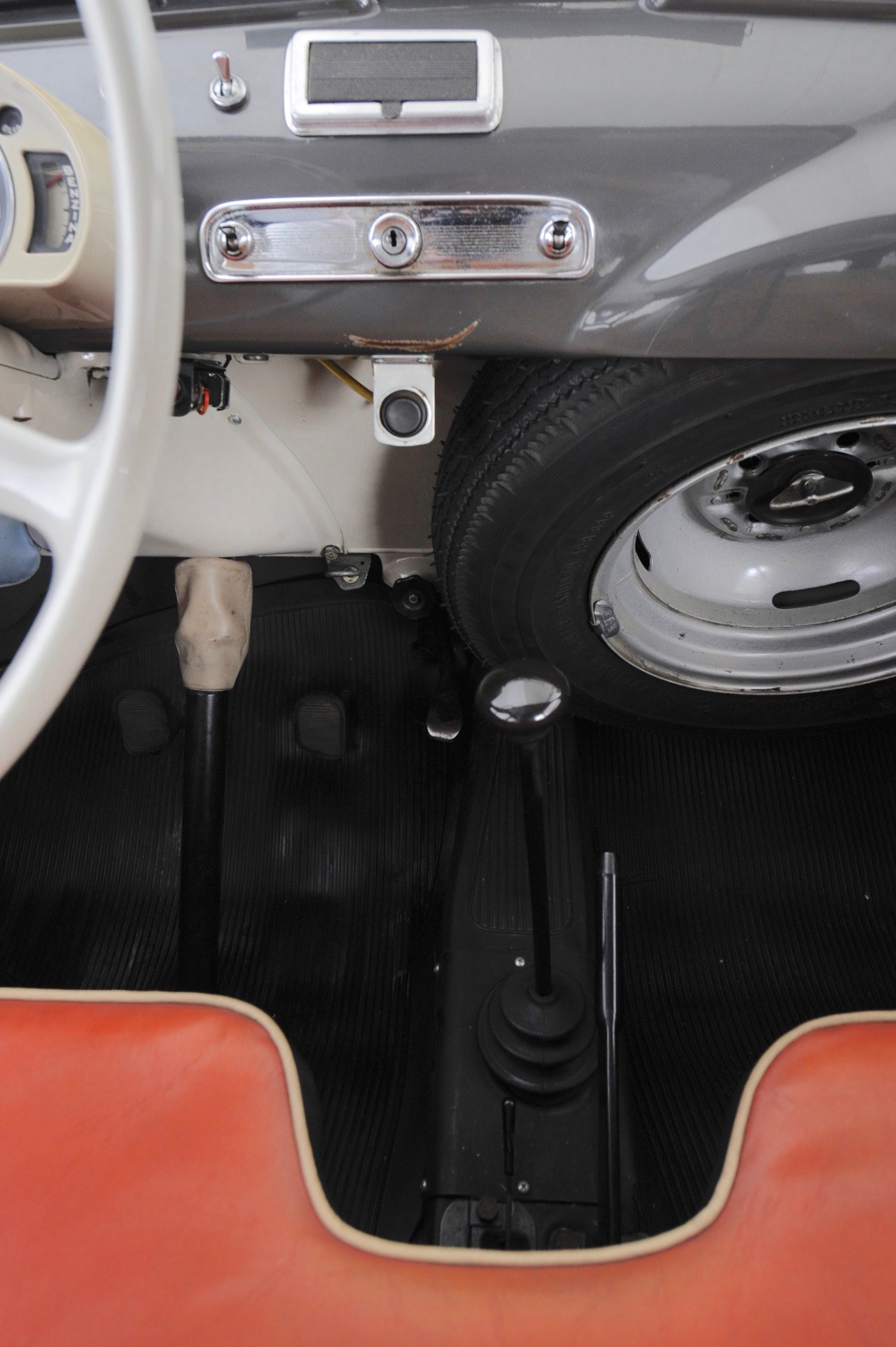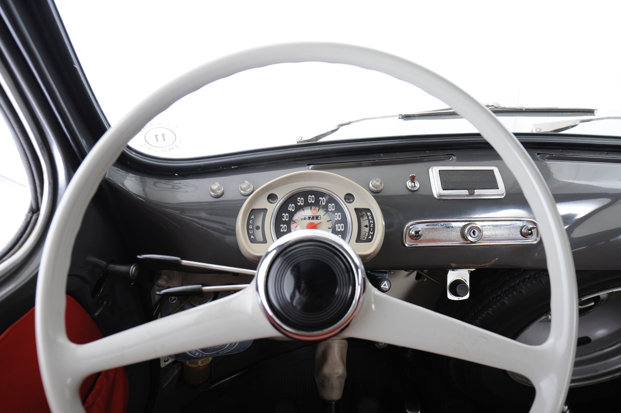 Das Vierzylinderchen mit 767 cm3 Hubraum (unser «Testwagen» stammt aus dem Jahr 1967, hatte also schon manchen «update» hinter sich), springt mit der typischen Vibration an, schüttelt sich ein wenig – und harrt dann fröhlich der Dinge. Nicht mittig, erstaunlicherweise. Ein wunderbares Detail: In der vorderen Sitzbank wurde Platz ausgespart, damit der Schalthebel genug Raum findet. Ewig lang ist er – und doch lässt sich das Viergang-Getriebe bestens schalten. Wild ist der Vortrieb nicht, aber das geht anständig, ausreichend, man will eh nicht zu flott, weil: siehe oben. Es ist klassisches, vorausschauendes Fahren, das hier gepflegt werden darf, man beobachtet den Verkehr gut, weiss deshalb auch, wann man schon beschleunigen kann (was etwas dauert) und wann man besser abwartet. Zwar hat man davon gehört, dass die Turiner Taxifahrer ihre Multipla wild getrieben haben sollen, doch irgendwie möchte man das nicht ausprobieren, die Schräglagen werden bald einmal beängstigend, das Verhältnis von der Höhe (1,58 Meter) zur Breite der Spur ist auch nicht extrem vertrauenserweckend. Egal, man tuckert gern ein bisschen einher, 110 km/h schafft er locker, auch über längere Strecken. Abarth, so geht die Sage, soll Multipla auf bis zu 150 km/h gebracht haben.