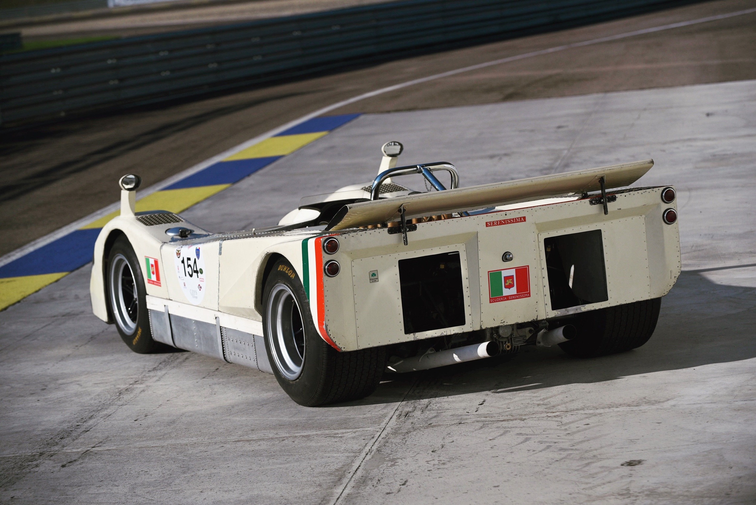 Es ist kompliziert (mal wieder). 1965 baute Bruce McLaren zusammen mit Robin Herd seinen ersten Formel-1-Rennwagen, doch der Ford-Motor, der diese Konstruktion hätte antreiben sollen, erwies sich als zu schwer. Doch bei Serenissima hatte Alberto Massimino, der zuvor bei Alfa Romeo, Ferrari und Maserti gearbeitet hatte, gerade einen komplett neuen 3-Liter-V8 mit vier oebenliegenden Nockenwellen und Doppelzündung konstruiert. Zwar war diese Maschine eigentlich nicht für den Rennbetrieb gedacht, doch sie war leicht und kompakt – und McLaren baute sie 1966 in den M2B-Formel-1 ein, schaffte sogar einen sechsten Rang in Brands Hatch. Die «Rechnung» bezahlte McLaren mit einem CanAm-Chassis. Das Serenissima mit einer hübschen, geschlossenen Karosserie einkleidete, die stark an den Ferrari P2/P3 erinnerte. Bei mindestens einem Rennen trat dieses Fahrzeug auch an, der Coppa Città di Enna im Jahr 1968, wo es fast so schnell war wie der Porsche 910 von Jo Siffert – und sowohl im Training wie auch im Rennen den zweiten Rang erreichte.