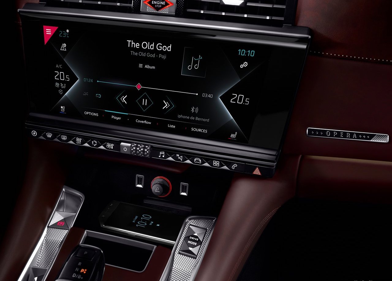 Mit einer Länge von 4.93 Metern spielt der DS9 wirklich in der Oberklasse und übertrifft alle seine technischen Brüder der EMP2-Plattform deutlich. Besonders der Radstand von 2.90 Metern ist bemerkenswert. Zum Vergleich: der Peugeot 508 bringt es auf 2.79 Meter. Das Zusatzmass kommt allein den Fondpassagieren zu Gute. Die dürfen es sich dann auch gleich in einer Art Lounge gemütlich machen. So nennt zumindest der Hersteller den Fond des DS9. Mit beheiz- sowie belüftbaren Sitzen, die zudem über eine Massagefunktion verfügen, soll der Aufenthalt während der Fahrt so angenehm wie möglich gestaltet werden. Auch der Materialmix passt. Aufwändig vernähtes Nappaleder auf den Sitzen, handschmeichelndes Alcantara am Dachhimmel, dazu Dekorelemente aus Kristallglas und Perlenstickereien. Der Innenraum des DS9 ist wirklich beeindruckend.