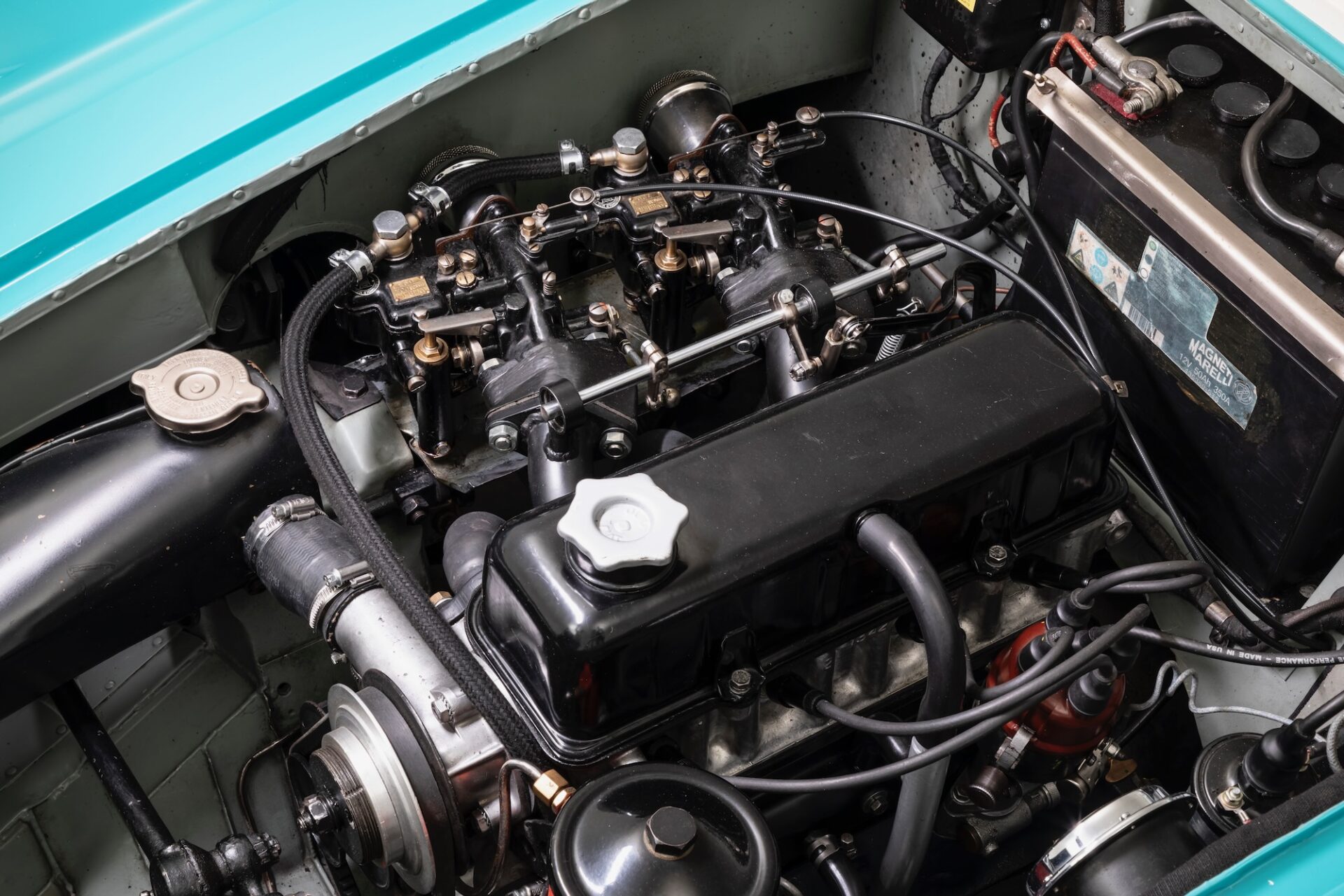 Abarth hatte mit Tony Pompeo einen rührigen Importeur in New York, zwar nicht ganz so umtriebig und gut vernetzt wie Ferrari-Händler Luigi Chinetti, doch anscheinend hatte Pompeo ebenfalls beste Beziehungen zu den besten Kreisen. Denn er konnte diverse Rennzwerge an Franklin Delano Roosevelt Jr., den Sohn des ehemaligen amerikanischen Präsidenten, verkaufen, auch gingen wohl alle 10 Exemplare des 207 A durch seine Hände – und diesen einmaligen Abarth 208 A, den wir hier zeigen, verschacherte er an zwei Brüder aus der unendlich reichen DuPont-Dynastie. Nach ein paar Jahren verkauften diese den Wagen an einen Freund, der ihn wiederum 1973 an Bill Hale verschenkte, der als Flugzeug-Mechaniker für die DuPonts gearbeitet hatte, den Abarth also von früher kannte.
