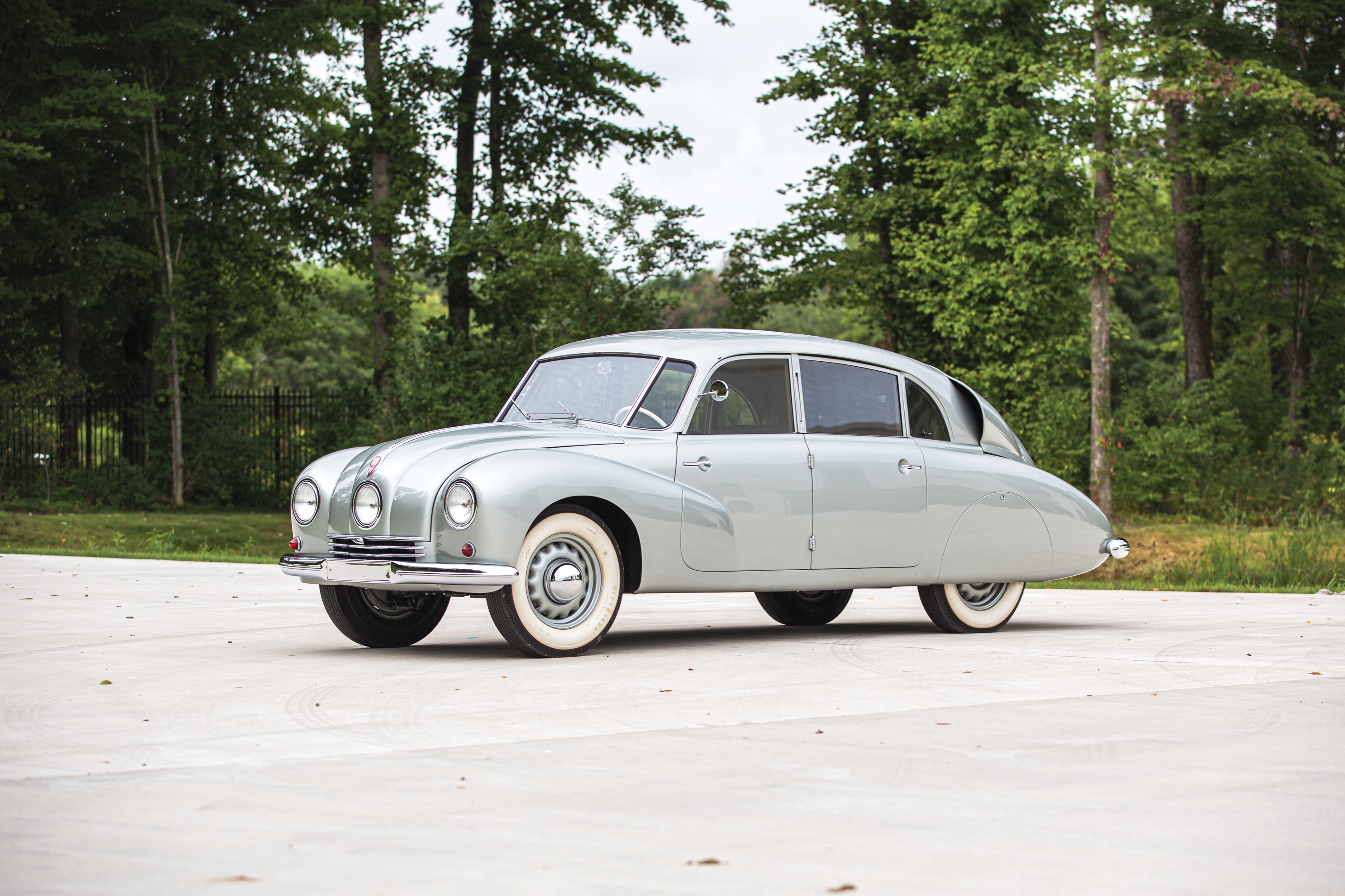 In der so wunderbaren Elkhart-Sammlung, die von RM Sotheby’s am 1./2. Mai 2020 online versteigert werden wird, steht auch ein so ein Tatra T87, Jahrgang 1948. Es gibt keinen Schätzpreis, alle Fahrzeuge kommen als «no reserve» unter den Hammer.