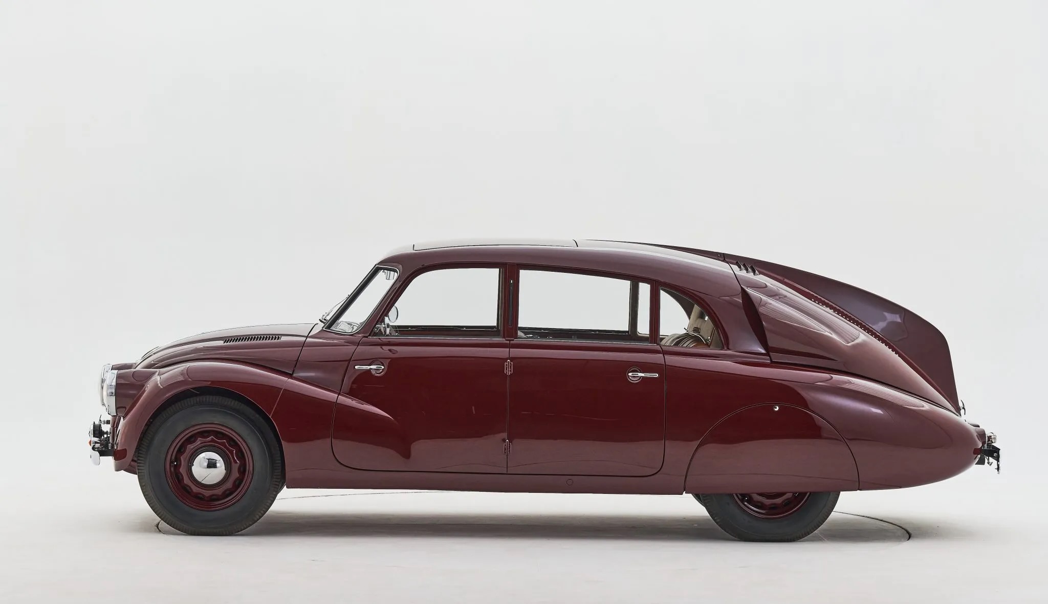Tatra, als Firma gegründet 1850 und seit 1920 auch als Bezeichnung für Automobile verwendet, ging erst 2013 bankrott. In den 20er und 30er Jahren des vergangenen Jahrhunderts aber war das tschechische Unternehmen mit Sitz in Koprivnice ganz vorne mit dabei, gehörte zu den fortschrittlichsten Herstellern der Welt. 1931 konstruierte der grosse Hans Ledwinka den V-570 mit einer wunderschönen, stromlinienförmigen Karosserie und einem luftgekühlten Zweizylinder-Boxer-Motor im Heck; sein lieber Freund Ferdinand Porsche schaute damals sehr genau hin. Der V-570 wurde nicht gebaut, aber dafür ging der Typ 77 ab 1934 in Serie, wieder mit stromlinienförmiger Karosse, diesmal aber mit einem luftgekühlten V8 mit obenliegenden Nockenwellen sowie 3 Liter Hubraum im Heck. Es war dies, zusammen mit dem weiter verbesserten Typ 87, der rund eine halb Tonne weniger wog, eines der geschichtlich wichtigsten Vorkriegsfahrzeuge überhaupt.
