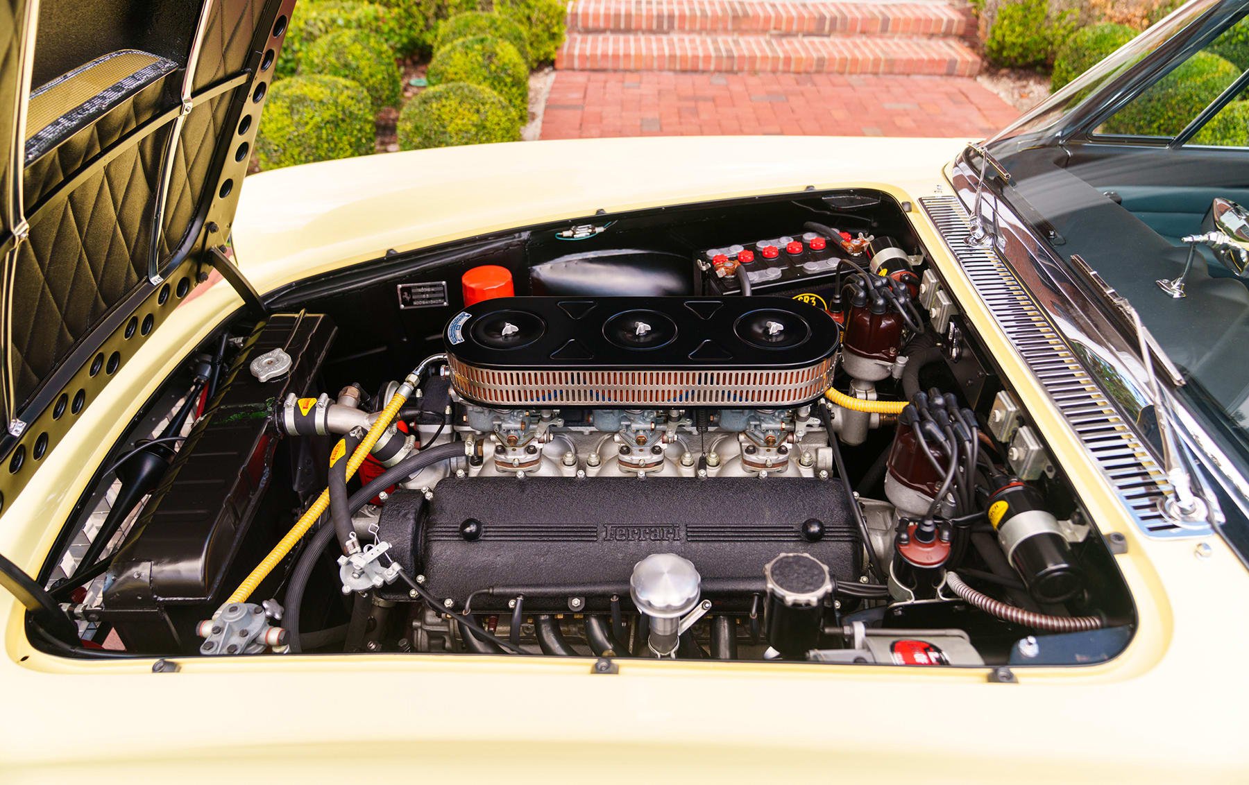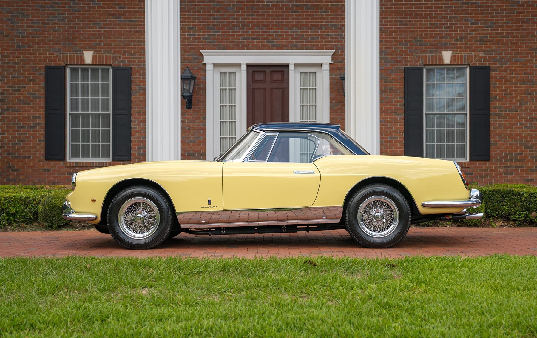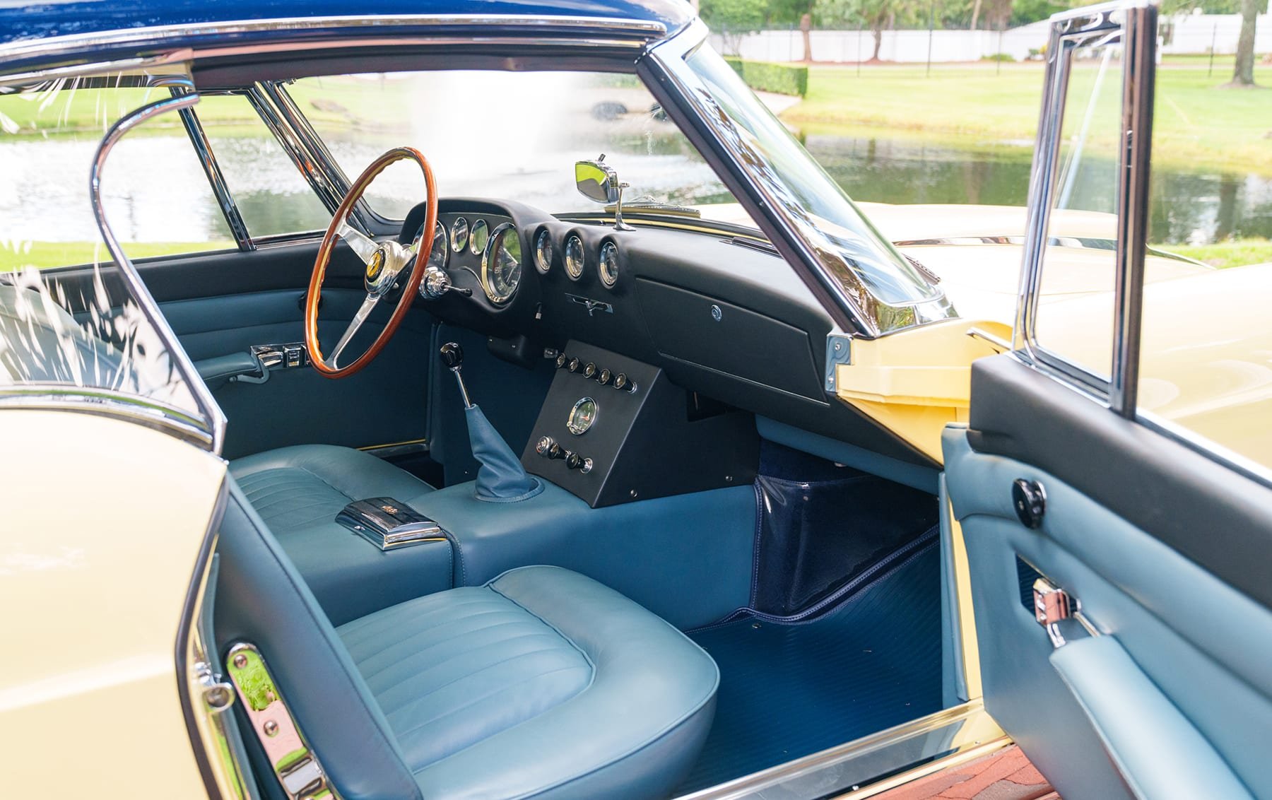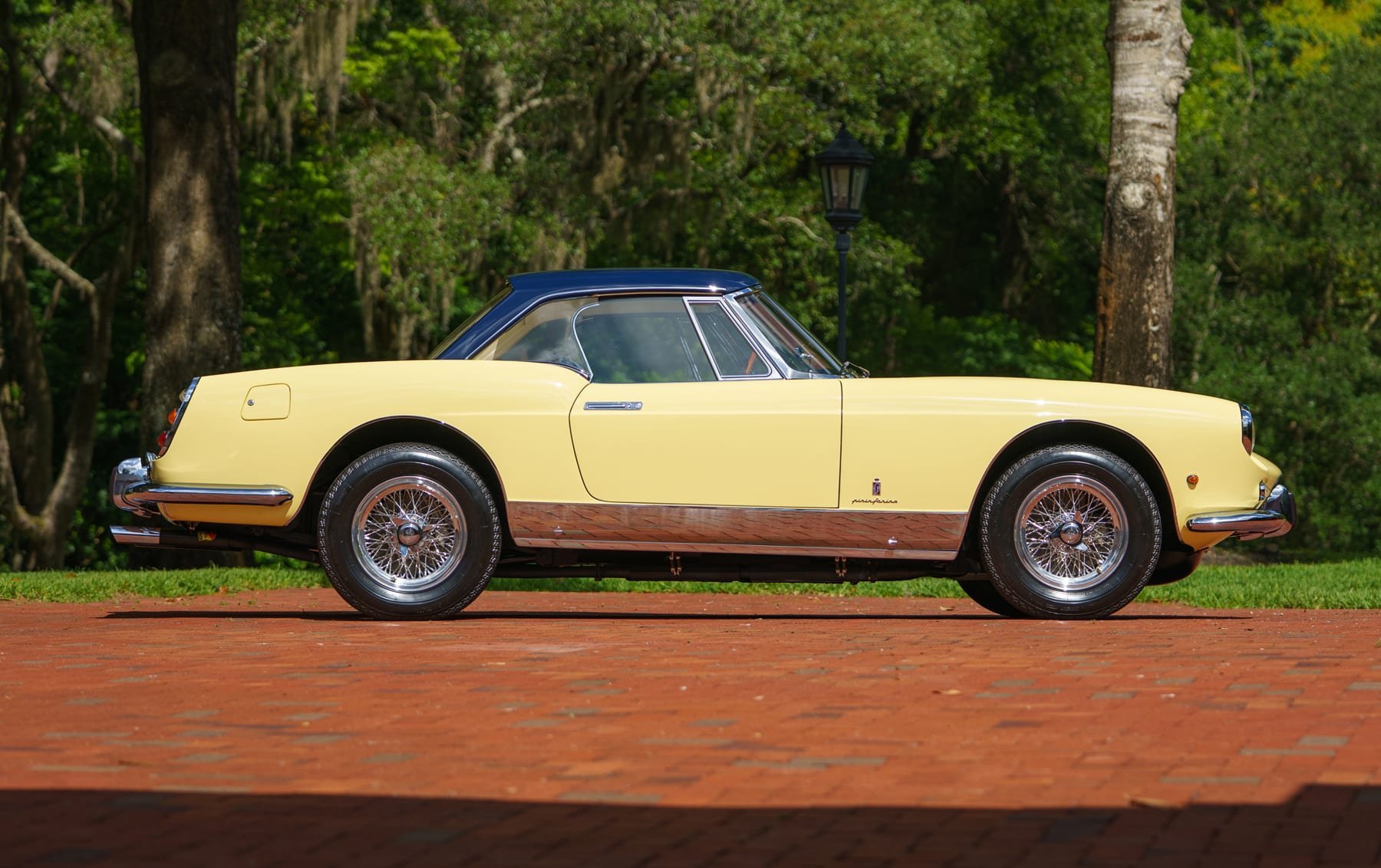 By 1965, chassis 2407 SA had been exported to the US, where it was owned by Ted Dibble, a real estate developer in Coos Bay, Oregon. He repainted it in Ford Mustang Poppy Red and added a roll bar. Three years later, it passed to Bruce Russell of Vancouver, who removed the roll bar and refinished the car in light yellow. Remaining in the Pacific Northwest for another decade, the Superamerica was traded in 1976 to Harley Cluxton’s Grand Touring Cars of Scottsdale, Arizona, toward a new 308 GT4 Dino. In 1977, it was included in a package deal to Rex H. De George of Beverly Hills, California. In 1979, the car entered the esteemed collection of Greg Garrison, a prominent television producer and avid Ferrari aficionado. Over the next 22 years, 2407 SA was a centerpiece in Garrison’s stable of coachbuilt Ferraris, which included legendary models such as Superfast I, 4.9 Superfast, 365 California, and 330 GTC Speciale. The Cabriolet resided in both his Southern California barn and Montana summer retreat until 2001, when it passed to its current owner. A passionate Ferrari collector with experience restoring some of the marque’s most significant coachbuilt models – including a 410 Superamerica, 500 Superfast, and several 400 Superamericas – the consignor commissioned Bob Smith Coachworks of Gainesville, Texas, for a no-expense-spared, concours-quality restoration. The car was refinished in the arresting combination of light yellow with a dark blue hardtop and medium blue leather upholstery. Completed in 2008 and shown selectively over the following two years, 2407 SA received numerous accolades, including a Platinum Award and Excellence Cup at Cavallino and a Third in Class at the Pebble Beach Concours d’Elegance®. It also graced the cover of Cavallino magazine and was the subject of a featured article by marque historian Alan Boe. Its last public showing was in 2010, at the Amelia Island Concours d’Elegance».