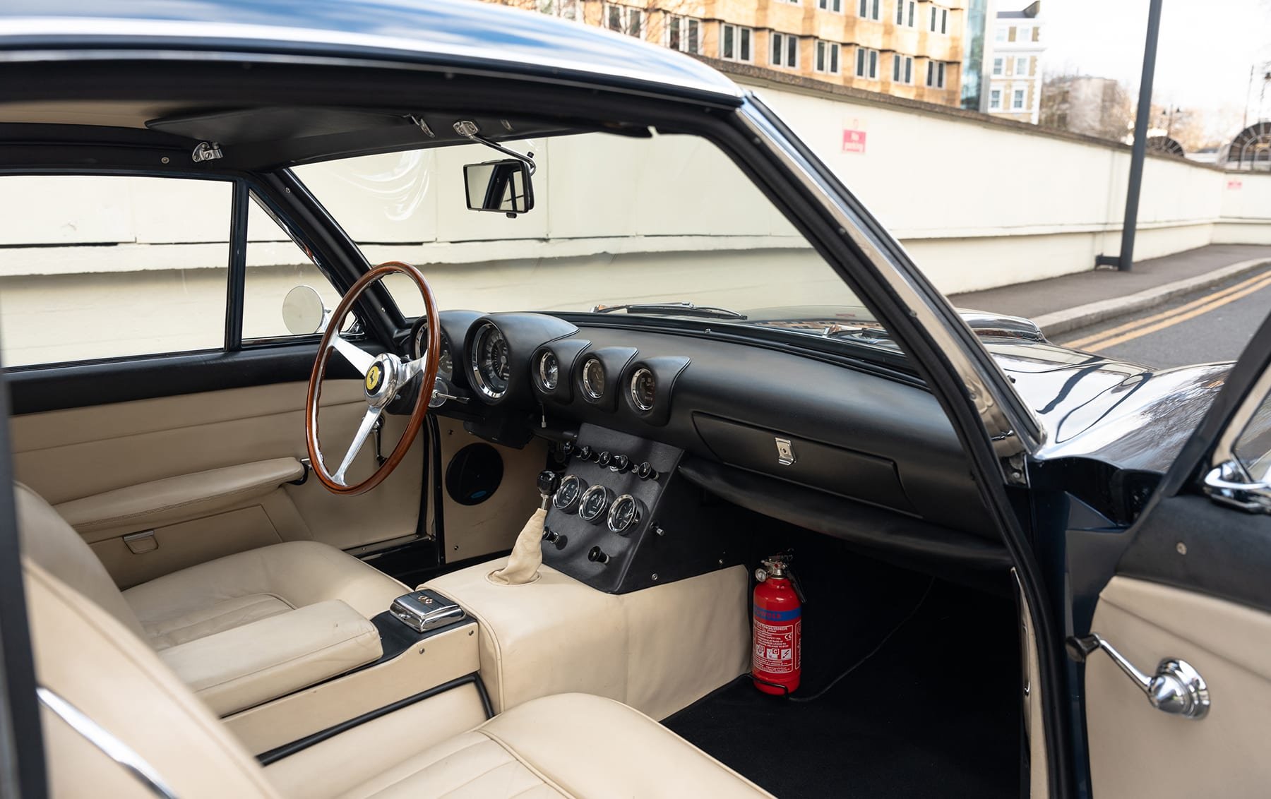 Es handelt sich um die Chassisnummer 2841, also ein SWB Coupé Aerodinamica von Pininfarina aus dem Jahre 1961.