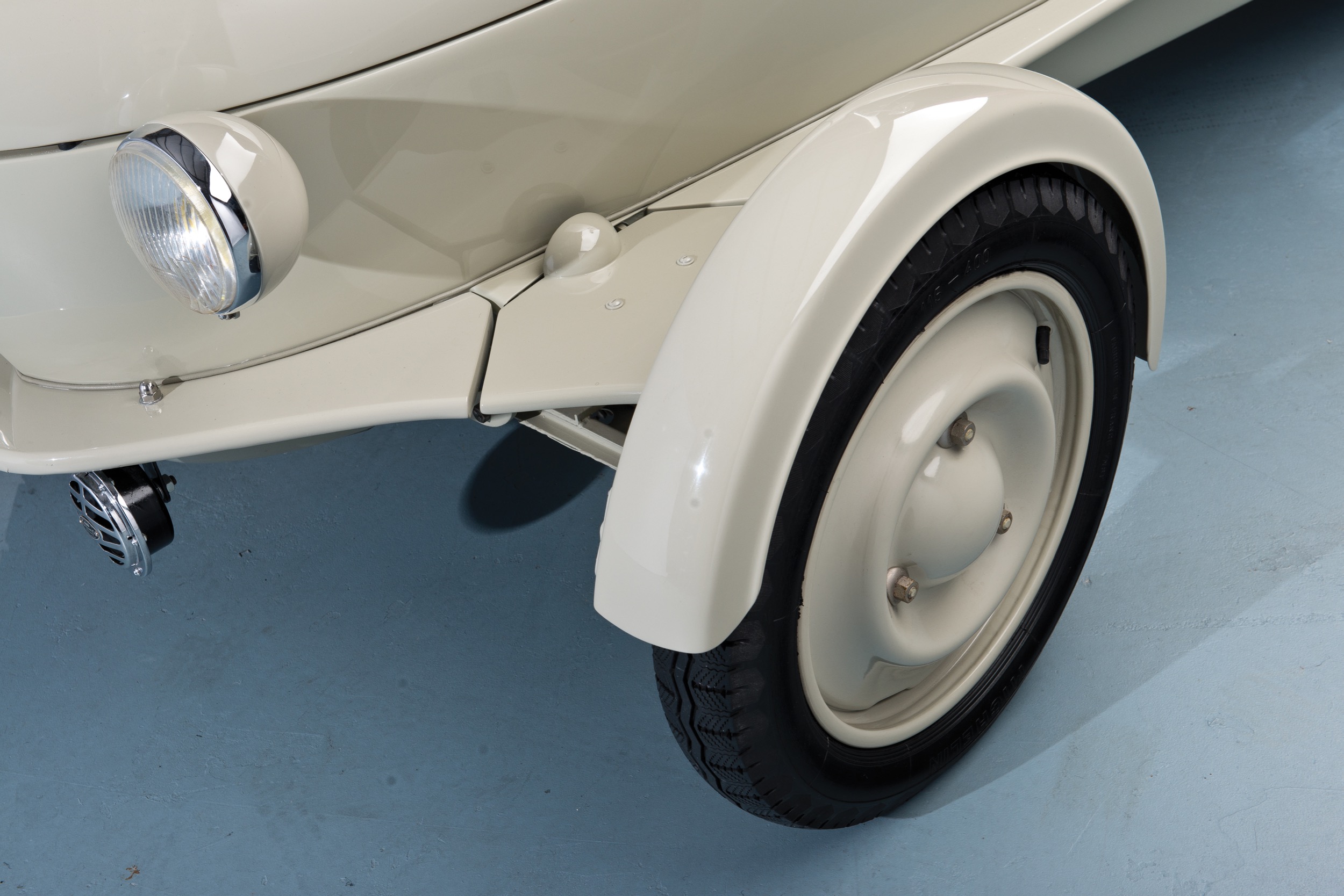 Doch jetzt der Clou: das Auto mass 2,9 Meter in der Länge, 1,32 Meter in der Breite und 1,82 Meter in der Höhe. Das bedarf nun einer Erklärung. Wenn man den Reyonnah fuhr, dann war er 1,32 Meter breit. Abends, wenn man ihn dann in den Pariser Hauseingang schob, dann liess er sich zusammenklappen, auf 0,75 Meter Breite (na?) – und wurde damit dann 1,82 Meter hoch. Das Prinzip des Zusammenklappens der Vorderachse war denkbar einfach, es befanden sich links und rechts je ein paar Gelenke. Praktisch war anders – aber es funktionierte. 200 Kilo wog das Ding, das liess sich problemlos schieben.