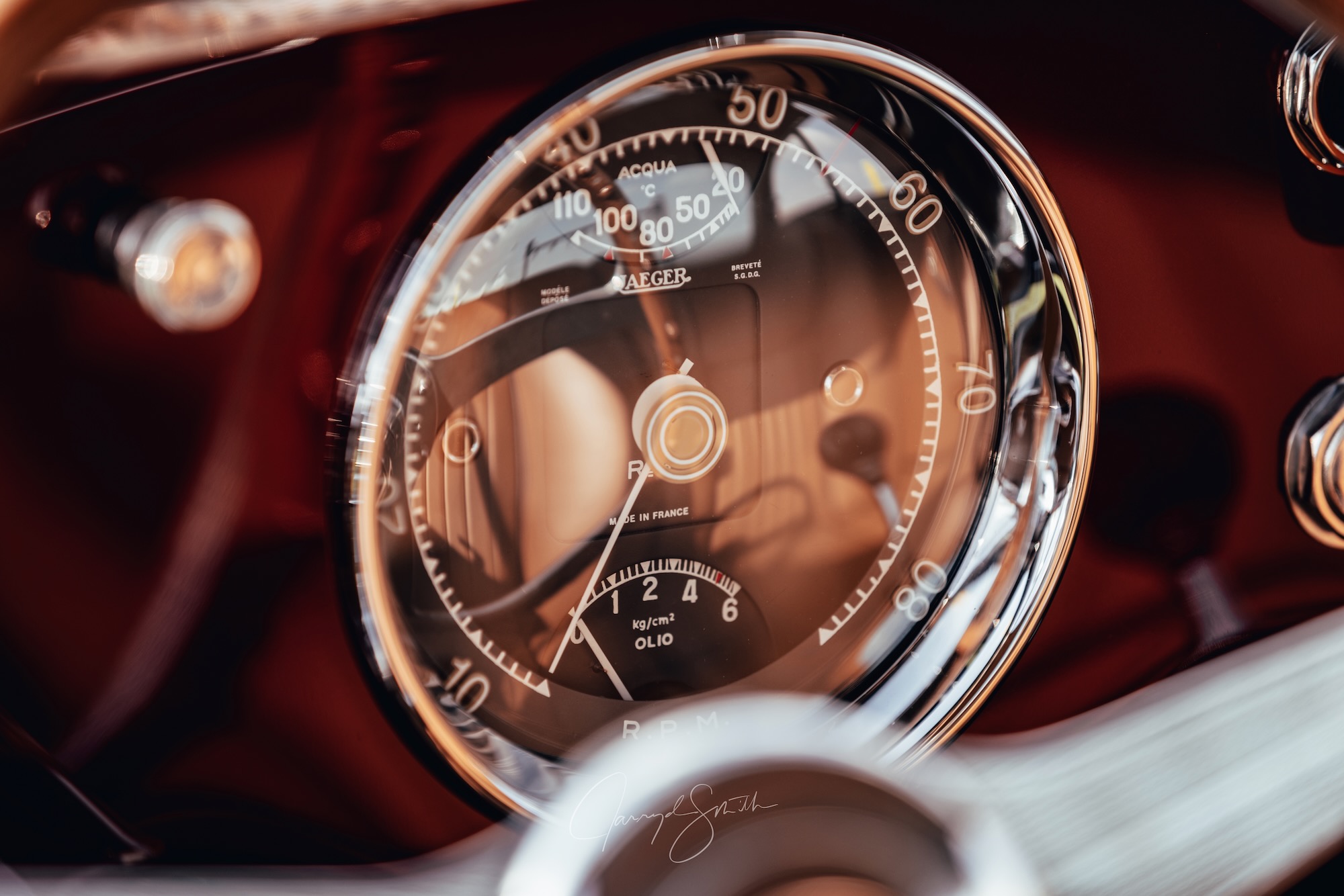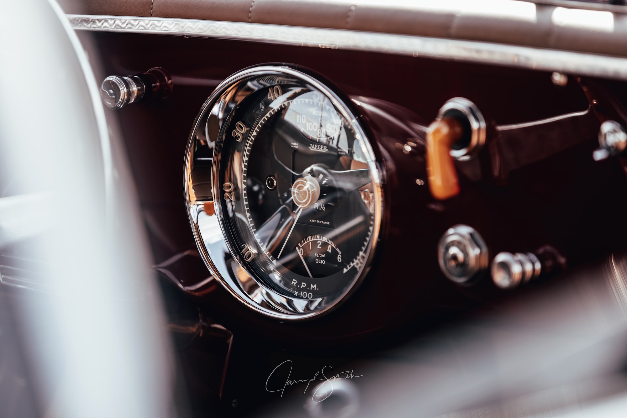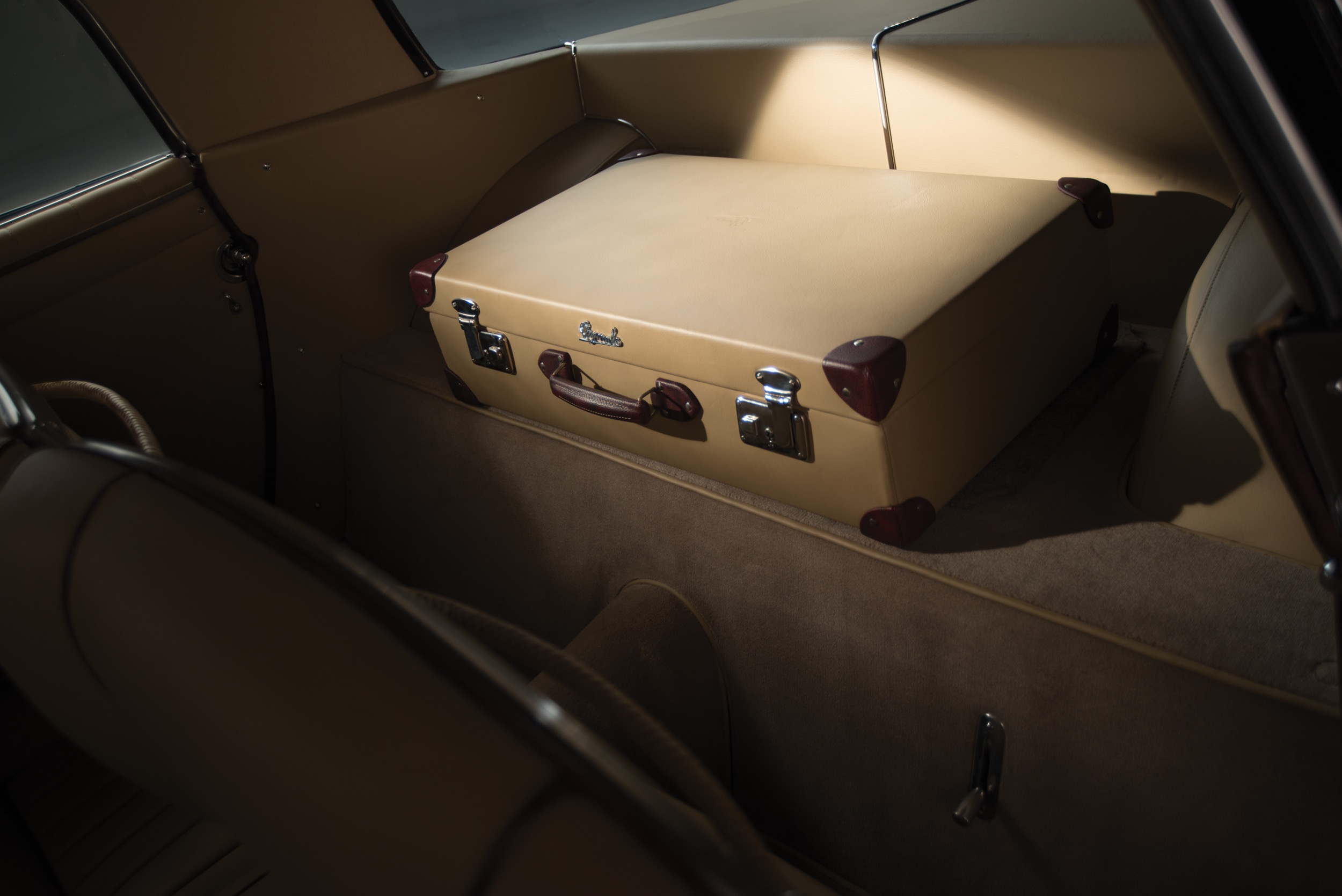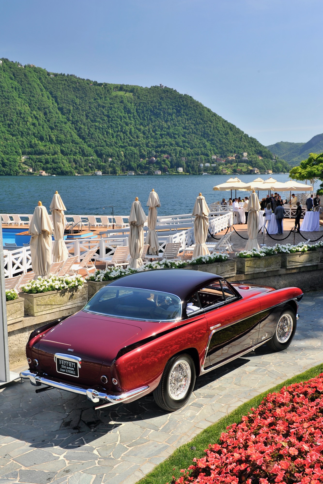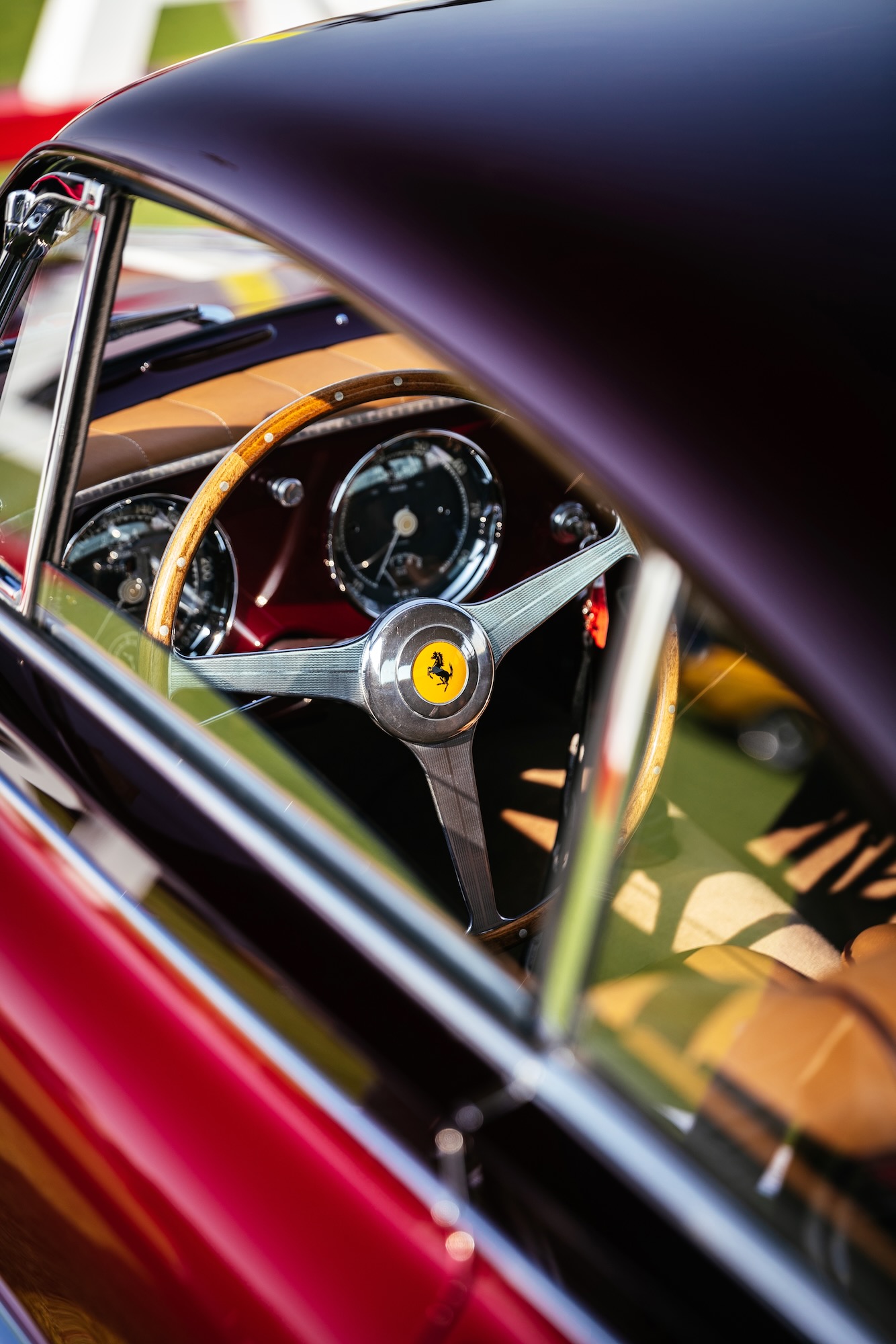 Der oben wie auch unten gezeigte 0305 EU ist ein ganz frühes Modell, das vierte in der Serie. Das Chassis kam am 29. September 1953 aus Maranello zu Pinin Farina, die Karosse wurde in Rosso Marrone sowie Beige lackiert, innen gab es Leder ebenfalls in Marrone und dazu die passenden Stoff-Applikationen in Beige. Aussergewöhnlich: der Tankdeckel befand rechts auf dem hinteren Kotflügel, alle anderen 250 Europa hatten den Stutzen – im Kofferraum. Pinin Farina stellte 0305 EU am 24. Dezember 1953 in Rechnung, verkauft wurde das Fahrzeug am 15. März an den italienischen Unternehmer Giovanni Latino. Der ein guter Freund von Pinin Farina war, das Fahrzeug bei verschiedenen Concorso d’Eleganza und auch Rennen herzeigte, also so ein bisschen Werbung machte für den Meisterschneider.