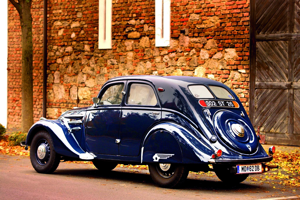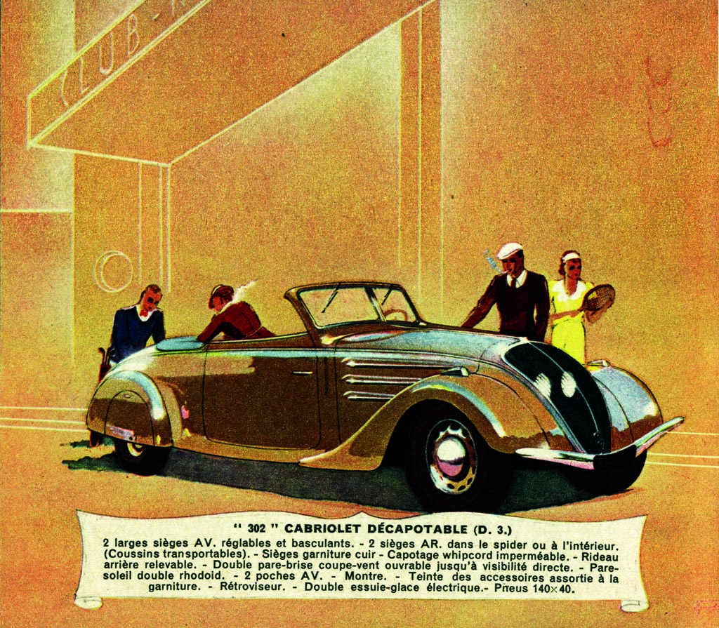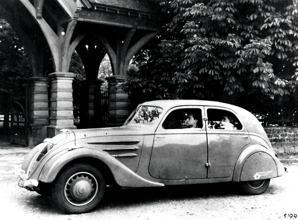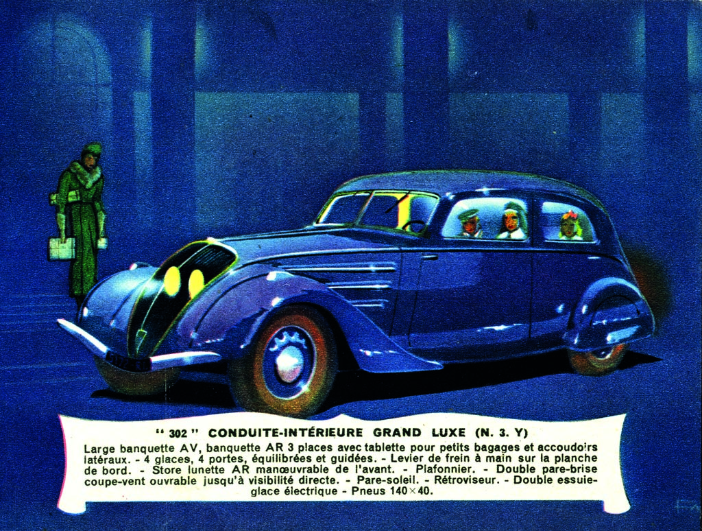 Es gab den 302 auch als Cabrio, für die weit grössere Modellvielfalt war der 402 zuständig, von dem auch ein Blechdach-Cabrio (Eclipse) aufgelegt wurde oder eine abermals aerodynamischere, von Jean Andreau entworfene Version mit üppiger Heckflosse. Legendär wurden auch die offenen Sportkarosserien, die der Pariser Peugeot-Händler Emile Darl’Mat angeregt hatte. Freilich war auch der 302 unverschämt teuer in einer Welt, die noch die Wunden der Wirtschaftskrise leckte, also schrumpfte Peugeot die Stromlinie 1938 abermals. Der 202 sah dann schon ein wenig nach Karikatur des Fortschritts aus mit seiner knubbeligen Karosserie, aber nach einer höchst sympathischen: 1133 ccm, 30 PS und Platz für vier waren ein gesundes Mass in den späten 30er Jahren, somit überflügelte er die beiden üppigeren Modelle bei den Verkaufszahlen auf Anhieb, bis der Zweite Weltkrieg die Produktion ziviler Autos gewaltsam erliegen liess. Vorerst. Denn schon 1946 rollte der 202 als Peugeots erster Vorschlag einer Nachkriegsmotorisierung wieder auf die Strasse, wo er den Weg ebnete für die solide Erfolgsstory der 50er und 60er Jahre. Aber nie wieder sollte das Design eines Peugeot seiner Zeit so weit voraus sein.