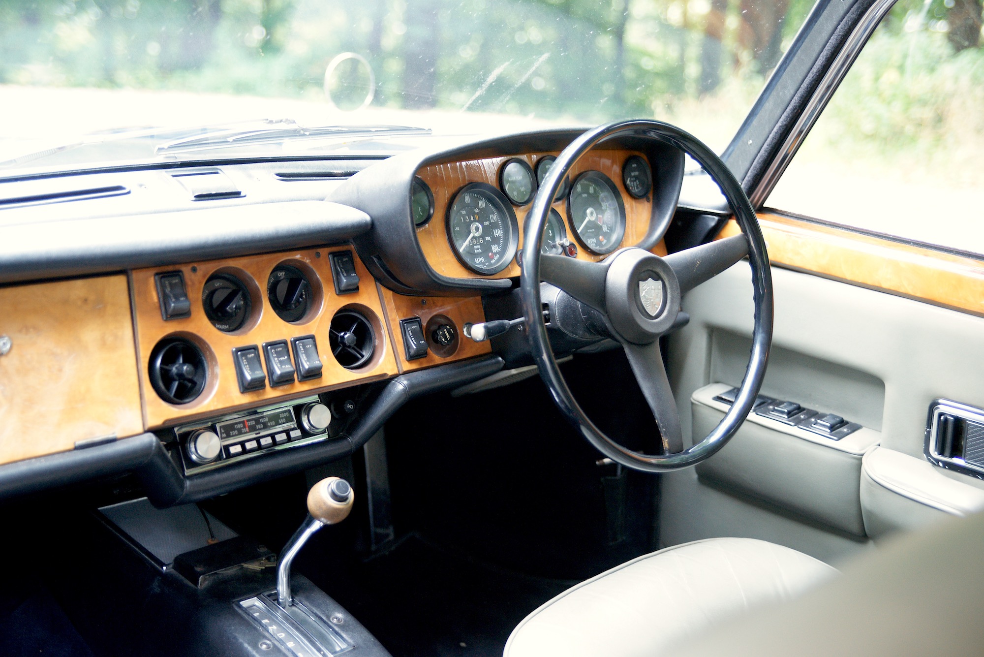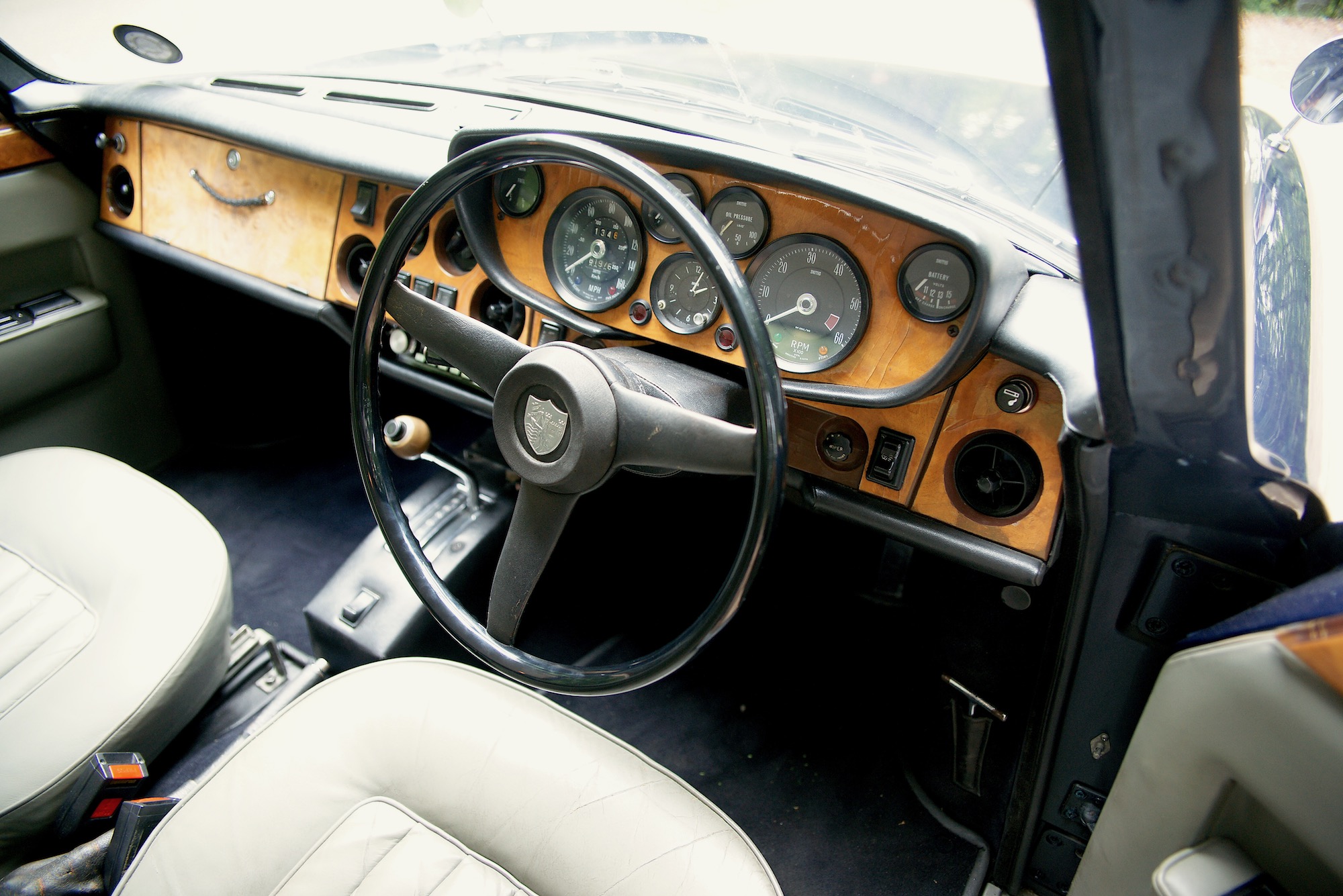 Unser Proband ist ein Mk. 3, also eigentlich das am wenigsten begehrenswerte Modell mit der eingebremsten Motorisierungen und dem ersten Toaster-Grill. Nun ist aber definitiv so, dass jeder Bristol einfach nur wunderbar ist – unter den Engländern ein wahrhafter Brite. Sehr speziell in jeder Beziehung, optisch, technisch – und überhaupt. Der 411 ist ein mächtiges Automobil, 4,90 Meter lang, 1,72 Meter breit, 1,46 Meter hoch – der Radstand von 2,90 Metern sorgt für grosszügige Platzverhältnisse innen (und für einen hervorragenden Geradeauslauf). Wobei, hinten sitzt man nicht fürstlich, der Bristol ist ein klassischer Gran Turismo, der auf zwei Personen und lange Reisen ausgerichtet ist. Leider hat in den 70er Jahren bereits der Plastik Einzug gehalten in den Innenräumen, der Armaturenträger des 411 ist nicht mehr aus einem Holzstamm geschnitzt wie bei früheren Modellen, doch es ist alles horizontal angeordnet, man behält problemlos den Überblick; das Lenkrad ist gross und steht sehr steil. Und die Sitze, nun, es gab ja Zeiten, als man noch nicht so grossen Wert auf Seitenhalt legte; dafür könnte man sich diese Fauteuils auch in die gute Stube stellen.