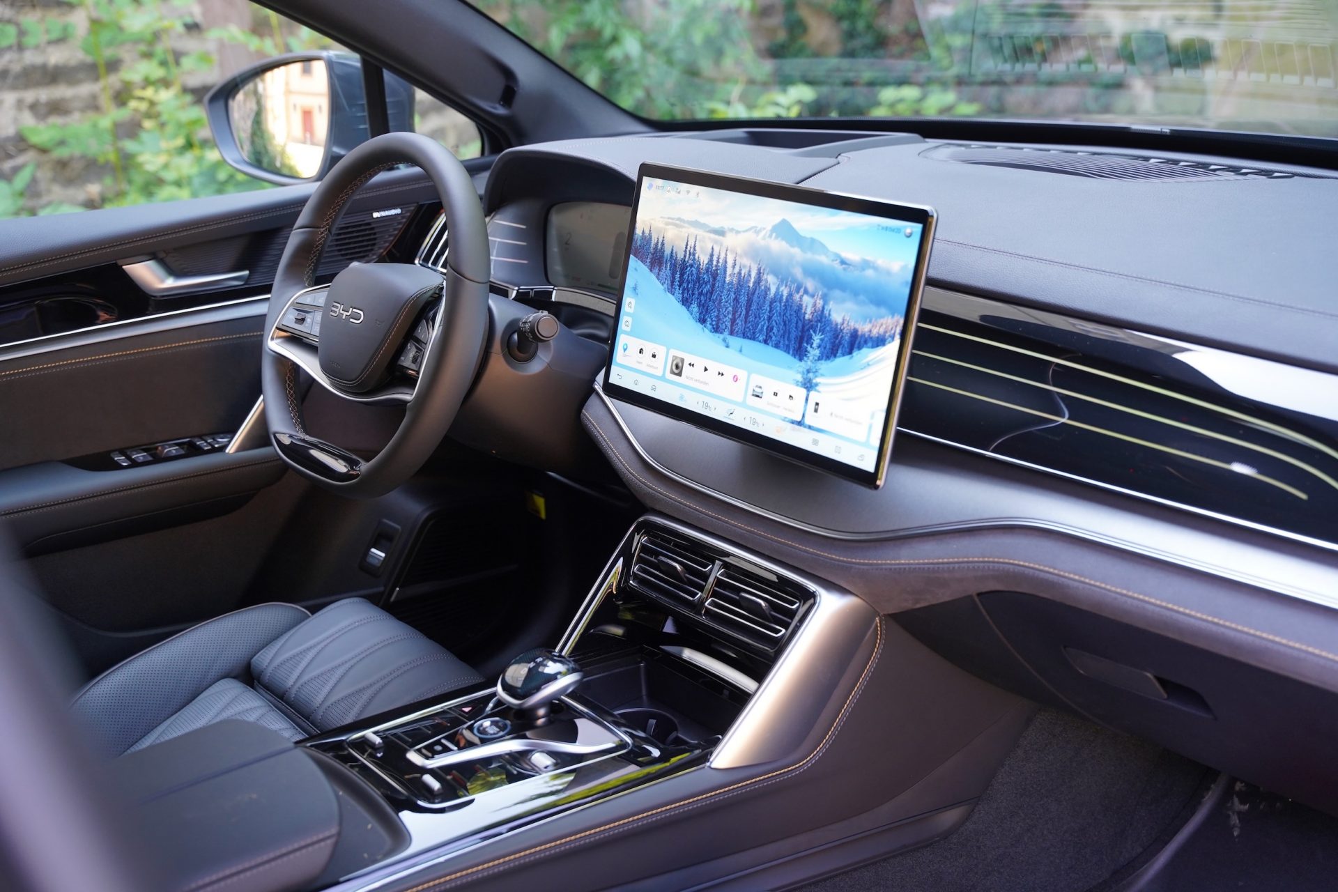 Innen ist das alles ja ganz nett, die vorderen Sitze sind bequem, Leder und Alcantara zeigen, dass die Chinesen die Premium-Klaviatur auch beherrschen. Speziell ist der 15,6 Zoll grosse Touchscreen auf der Mittelkonsole, der sich sogar drehen lässt. Die Bedienung ist logisch, die Sprachsteuerung funktioniert anständig. Allerdings sind in den Tang so viele Assistenten verbaut, dass mit Garantie immer irgendetwas bimmelt, pfeift, sonstwie tönt – es ist ein Fluch. Dafür ist auch in der zweiten Reihe reichlich Platz, so soll das sein in einem E-Auto, die mittlere Bank lässt sich sogar verschieben. Ganz hinten wird es dann allerdings eher eng, da fühlen sich nur kleinere Kinder wohl – einen Kindersitz möchte man da aber nicht montieren müssen, auch wenn die entsprechenden Isofix-Halterung vorhanden sind, das geht dann in Richtung Kunstturnen. Ist alles Gestühl aufgeklappt, verbleiben noch 235 Liter Kofferraum, beim Fünfplätzer sind es 940 Liter, beim Zweisitzer dann 1655 Liter. Alles ok, aber halt weit entfernt von aussergewöhnlich.