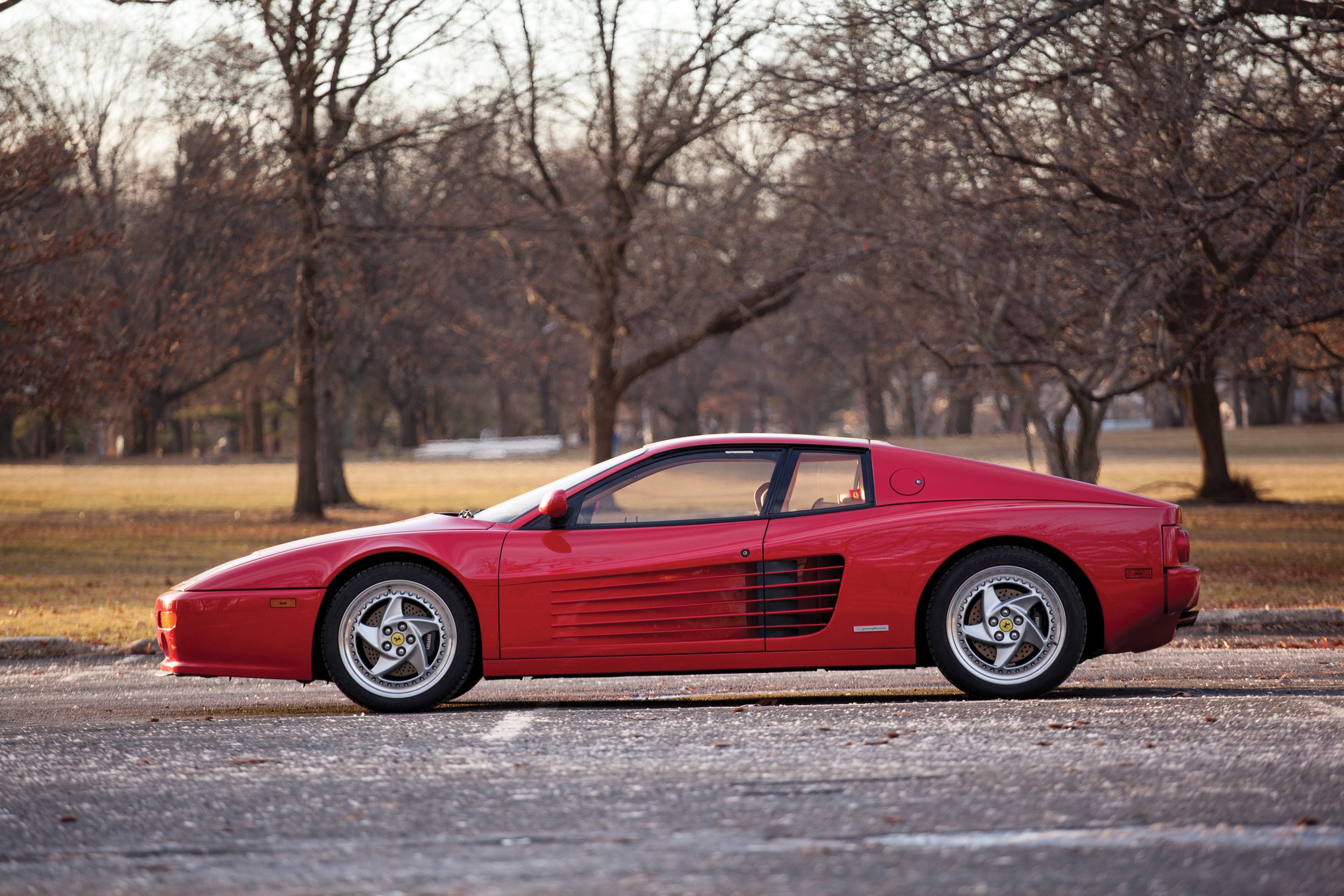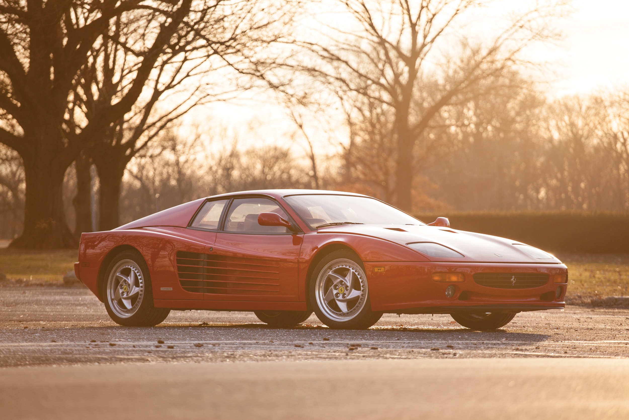 Aus dem Testarossa wurde 1991 der 512 TR. Das bedeutete in erster Linie: mehr Leistung. 428 PS und ein maximales Drehmoment von 491 Nm bei 5500/min waren es, dies dank geänderten Zylinderköpfen mit grösseren Ventilen, etwas mehr Luft und eine verbesserte Auspuffanlage. Die 0 auf 100 schaffte er in 4,8 Sekunden, die Höchstgeschwindigkeit lag bei 314 km/h. Von aussen sind die 512 TR an einem neuen, trapezförmigen Kühlergrill erkennbar, ähnlich wie beim 348er. Auch von hinten ist er gut erkennbar, die Heckschürze umfasste die Auspuffrohre. Es darf geschrieben sein, dass der 512 TR ein deutlich besseres Fahrzeug war als der Testarossa, einfacher zu schalten, einfach im Handling – es wundert deshalb auch nicht, dass diese Modelle, von denen bis 1994 stolze 2261 Exemplare entstanden, höher gehandelt werden als die Rotkäppchen, obwohl sie jünger sind.