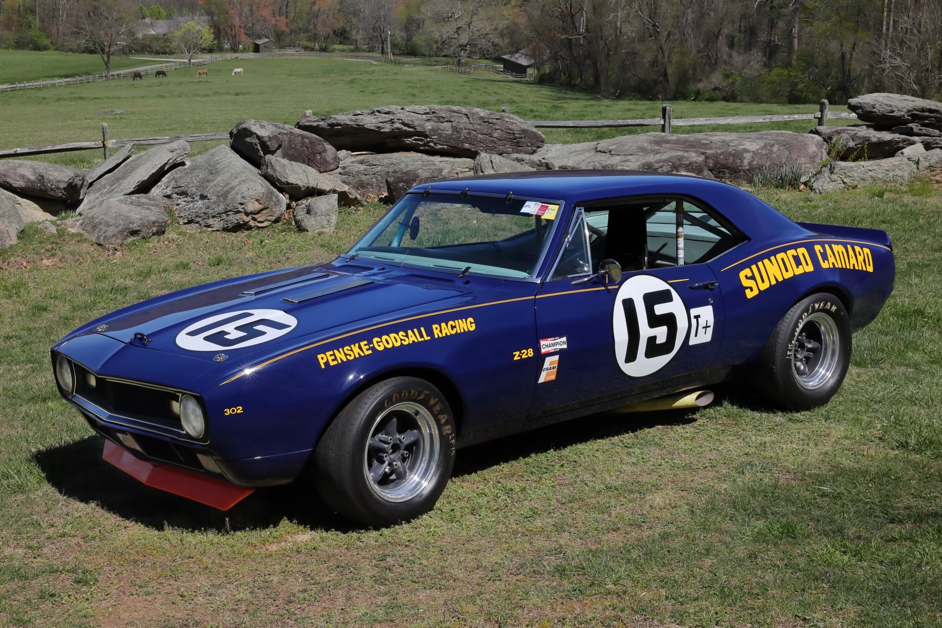 Schön ist die Geschichte von Donohue und dem Chevrolet Camaro, den wir hier zeigen. 1967 waren das Team Penske und Donohue erstmals auf einem Camaro in der Trans-Am-Series angetreten, mit einigem Erfolg, etwa einem Klassensieg bei den 12 Stunden von Sebring. 1968 wollte man mehr – und schaffte das auch, Donohue gewann 10 von 13 Rennen. Bloss hatten diese Siege einen sanften «Gschmäckle»: Penske hatte den ganzen Wagen Ende der Saison 1967 in ein Säurebad gesteckt, das einiges an überflüssigem Metall wegfrass. Es war eine ganze Menge, 120 Kilo leichter als die Konkurrenz war der Camaro nach dieser Behandlung. Die Stewards kamen Penske und Donohue auf die Schliche, verboten das Gerät für die Saison 1968. Doch die Jungs hatten schon den nächsten Trick auf Lager: es gab noch einen zweiten, identisch lackierten Sunoco-Camaro, der dem Reglement entsprach, der trug die Nummer 15. Bei der Abnahme schickten sie die zuerst 15 zur Kontrolle, schoben den Wagen zurück in die Box, klebten die 16 drauf – und alles war gut. Die Karosse der Nummer 16 war anscheinend so dünn nach der Säurebehandlung, dass es streng verboten war, sich gegen den Wagen zu lehnen – soviel zu den «klaren» Regeln bei den Trans-Am-Rennen.