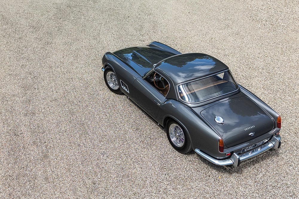 Erster Besitzer von #2383GT war Ernst Lautenschlager, ursprünglich aus Mannheim, später in Stuttgart, ursprünglich Metzger und deutscher Meister im Boxen, später ganz erfolgreicher Rennfahrer, Nachtclub-Besitzer und ziemlich reich. Eigentlich wollte er ja ein Coupé, um damit Rennen zu fahren, doch irgendjemand bestellte einen Renn-Spider mit Hardtop – und so kam Lautenschlager eher zufällig zu einem sehr aussergewöhnlichen Fahrzeug. Unter dem Pseudonym «Luciano Conti» – «die Steuerbehörde muss nicht alles wissen» – bestritt er ein paar Rennen, gewann vor allem am Berg. Und verkaufte den im April 1961 ausgelieferten Ferrari schon im September 1962 weiter. Ab 1963 war der California Spider dann rot, 1967 kam er in die USA, seit 1998 war er im Besitz von Brandon Wang. Warum dieser das ursprünglich silberne Fahrzeug bei einer kompletten und wohl nicht günstigen Restauration dann in Gewehr-Grau lackieren liess, entzieht sich unserer Kenntnis.