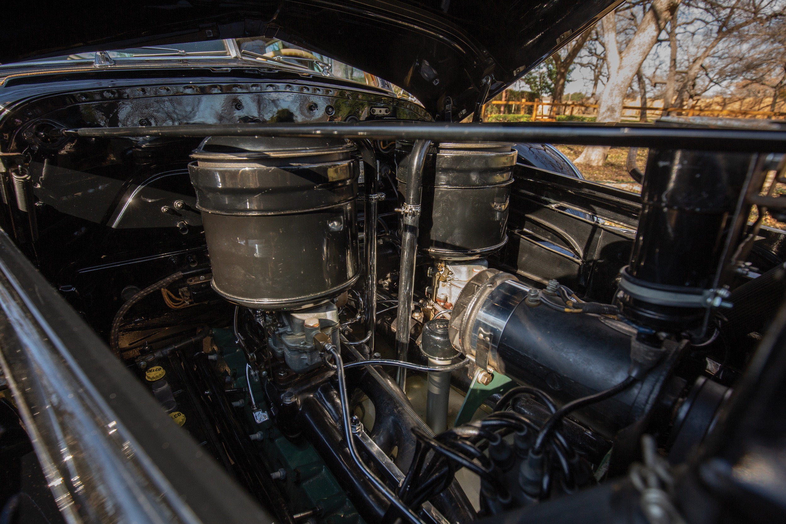 Zum Modelljahrgang 1938 war der neue Sechzehn-Zylinder eingeführt worden; die Bezeichnung blieb aber gleich, Series 90. Die Bezeichnung der Karosserie-Form ist auch etwas rätselhaft: Es gab den Convertible Sedan (9029) und es gab das Convertible Coupé (9067). Beides Cabriolets, beides 5-Plätzer. Beim Coupé fiel das Heck etwas schräger ab, auch das Dach war etwas mehr geneigt, aber man musste da schon genau hinschauen. Insbesondere, wenn die Wagen geschlossen waren. Ach ja, es gab von beiden je zwei Exemplare.