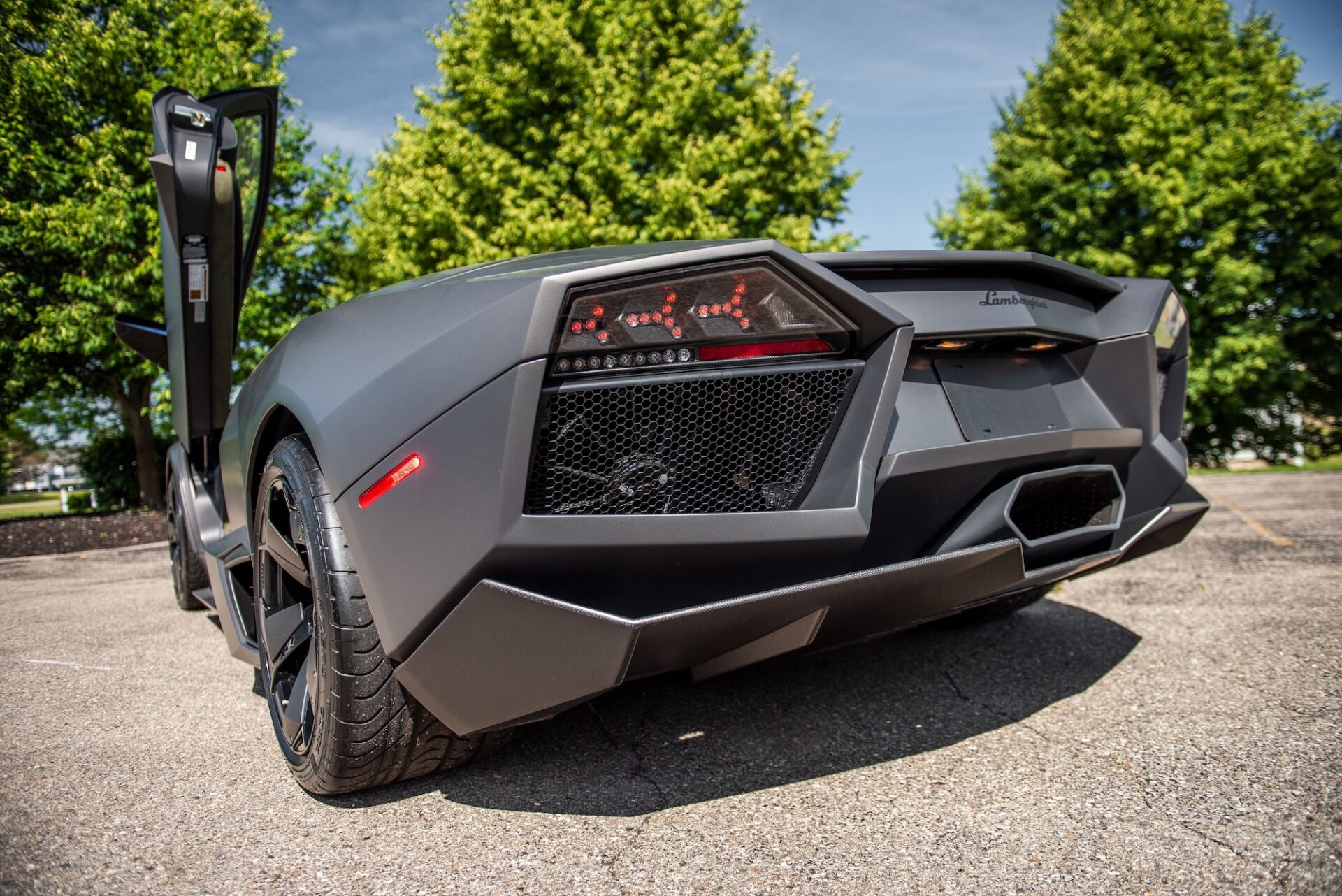 Auktion: RM Sotheby’s, Monterey 2015, verkauft für 1’375’000 Dollar, angeboten mit folgendem Text: «This example was originally delivered to Lamborghini Dallas and sold new to its first owner, Erich Spangenburg, a Lamborghini collector and resident of Dallas. Mr. Spangenburg only kept the car for a brief period, and it was subsequently acquired by the present owner. Today, it remains in virtually as-new condition and the odometer reads less than 900 miles since new. As a result, the Reventón shows very few signs of wear both inside and out. It is accompanied by its proper set of manuals with Reventón supplement, a copy of its window sticker, additional manuals, and a remote for the car’s Kenwood stereo».
