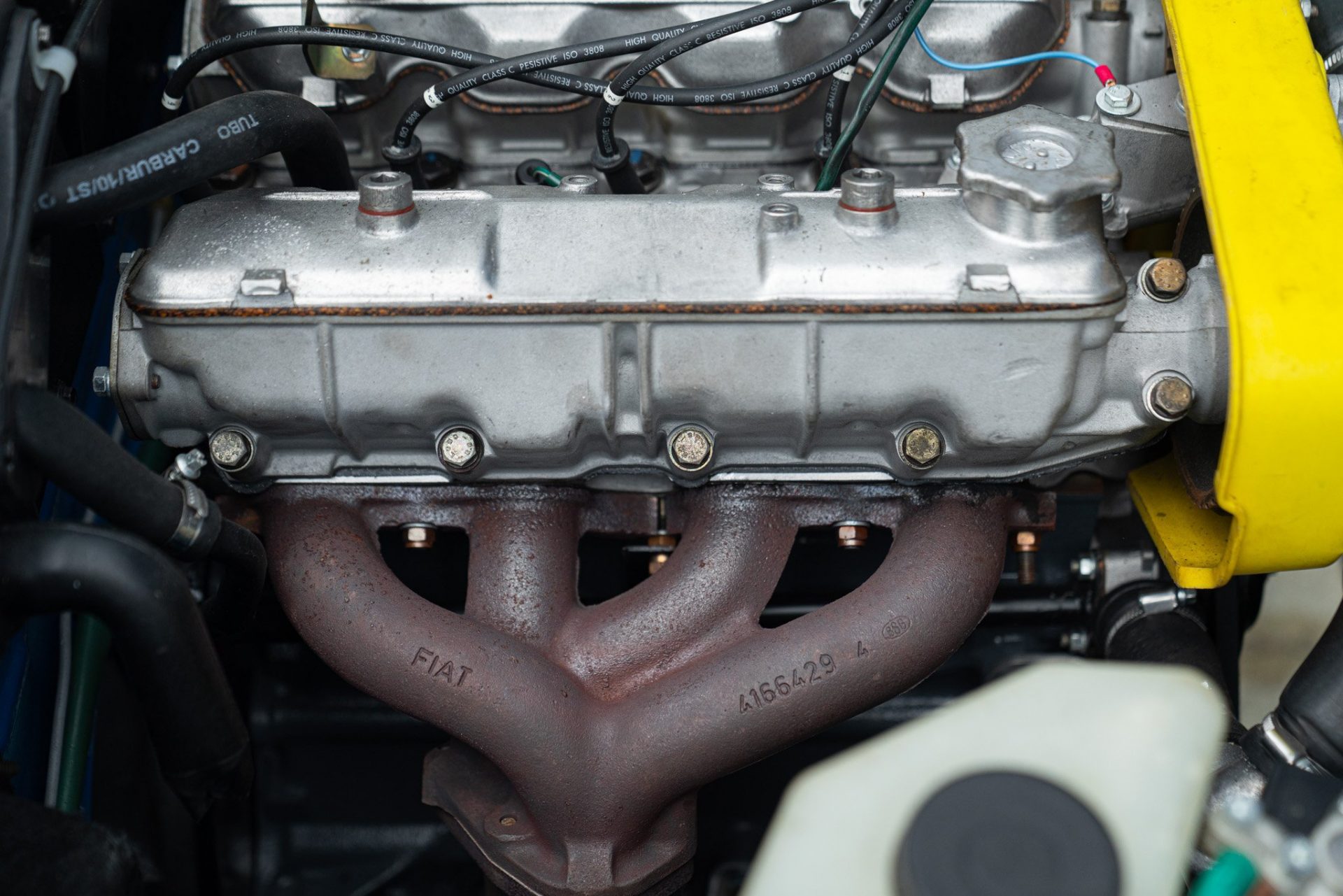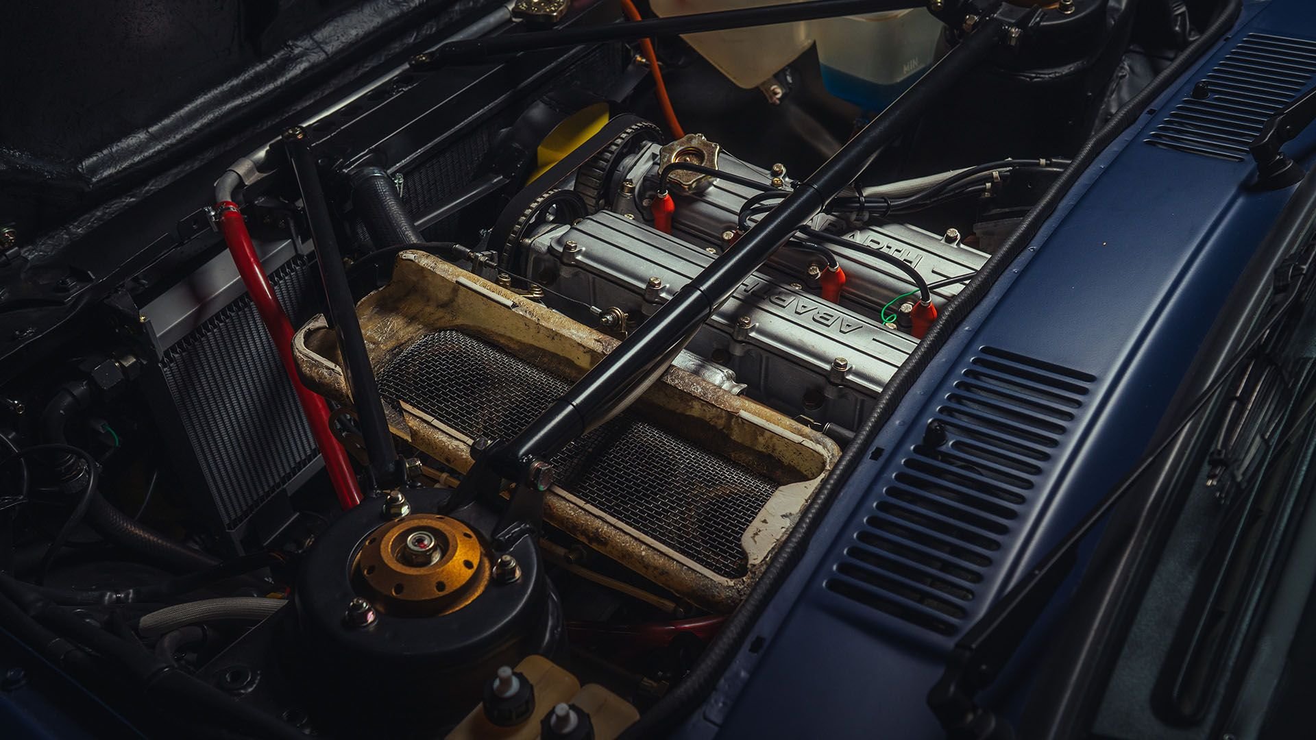 Das Maschinchen des Fiat 131 Abarth Rally Stradale wurde von Abarth präpariert, der 2-Liter-Reihen-Vierzylinder war mit einem Vierventil-Kopf versehen, dazu gab es einen Weber-Doppelvergaser 34 ADF, was die Leistung auf 140 PS bei 6400/min und das maximale Drehmoment auf 172 Nm bei 3600/min brachte. Ja, 1976 war das grob. Das 5-Gang-Getriebe kam aus dem ganz braven Seien-131er, es wurden ihm jedoch die Synchronringe ausgebaut, denn für die Homologation durften nur unsynchronisierte Getribe verwendet werden. Auch die Standard-Bremsen mussten weg, es kamen für die 400 Exemplare des Stradale, welche das Reglement forderte, die völlig unterdimensionierten Bremsen des Fiat 127 zum Einsatz; im Renn-Trimm war die Wahl der Bremsanlage frei, da konnte man sich für die «Serie» das teure Zeugs sparen. Hinten hatte der Fiat 131 Abarth Rally Stradale eine McPherson-Einzelradaufhängung, ähnlich jener aus dem Fiat 124 Abarth Spider mit Querlenkern, Längslenkern und Federbeinen. Das Sperr-Differential kam aus dem noblen Fiat 130, verfügte aber über ein Alu-Gehäuse.