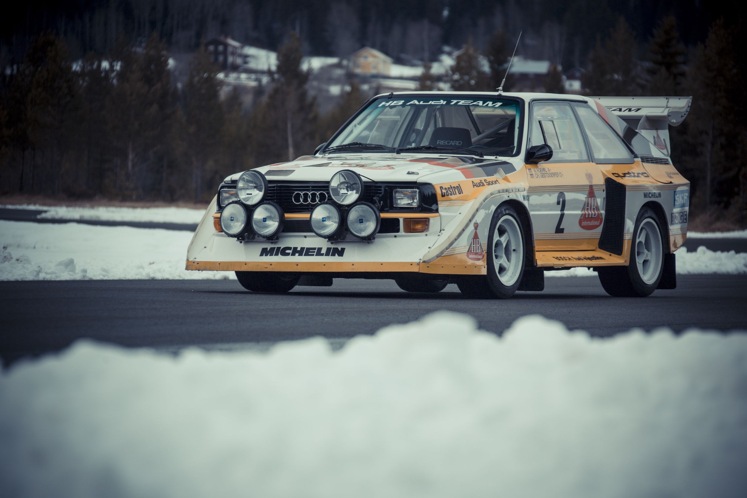 Der quattro wurde im Laufe der Jahre weiter überarbeitet, sein Allradsystem wurde ab dem Modelljahr 1987 mit einem Torsen-Mittel-Differenzial noch weiter verfeinert; das hintere Differenzial blieb manuell elektropneumatisch schaltbar. Der Hubraum wurde 1987 auf 2,2 Liter erhöht, die 200 PS blieben. Bis 1991 wurden insgesamt 11’452 von diesen Ur-Quattro gebaut. Der Ur-Quattro, zwar schwer (etwa 1350 Kilo) und lang (4,40 Meter, um genau zu sein, und 1,72 Meter breit, und 1,34 Meter hoch) konnte sich schon ab 1981 auch als Sportgerät beweisen. 1981 stieg Audi in die Rallye-WM ein, 1982 gewann man bereits die Marken-Weltmeisterschaft, und 1983 schaffte Hannu Mikkola auch noch den Fahrertitel. Doch weil etwa Peugeot mit dem extra-scharfen 205 Turbo 16 aufrüstete, musste bei Audi auch ein heisseres Gerät her.