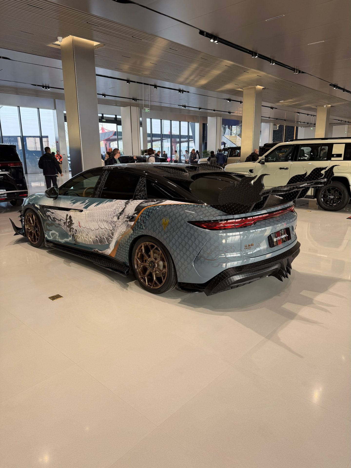 ZhengZhou ist unter den vielen chinesischen Millionen-Städten nicht die charmanteste. Die Sonne sieht man selten, ein Stadtzentrum gibt es nicht, der Moloch wuchert in alle Richtungen. Etwa eine Fahrstunde ausserhalb der 10-Millionen-Stadt entsteht gerade ein weiteres Ungetüm, das dereinst zur grössten Autofabrik der Welt werden soll. Vom Abschluss des Vertrages im April 2022 über die Grundsteinlegung bis zum Rollout des ersten Fahrzeugs dauerte es nur gerade 17 Monate; selbstverständlich wird auch die entsprechende Infrastruktur zugebaut, ein siebenspuriges Eisenbahnnetz, zwei neue Autobahnen, mehrere Wohnsiedlungen mit gewaltigen Wolkenkratzern, ein Visitor Center mit einer 1,8 Kilometer langen Rennstrecke, Off-Road-Parcours und allen Annehmlichkeiten, nach denen die Chinesen unterdessen verlangen. Sogar einen Pool gibt es, in dem das Top-Modell des BYD-Konzerns, der Yangwang U8, baden gehen kann.